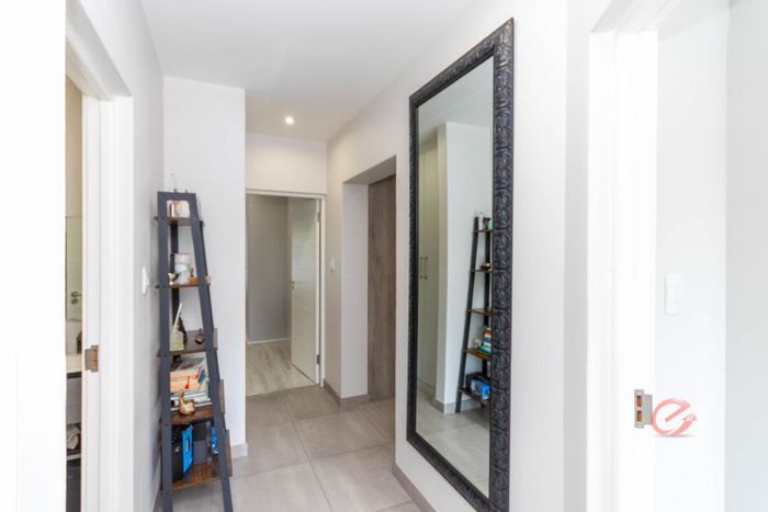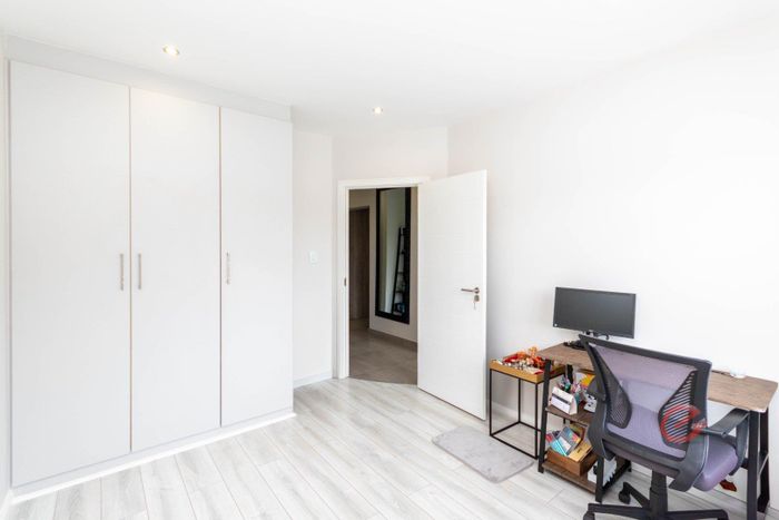 The lounge also opens up to the balcony and provides access to an upstairs spare room. Versatile in its design, this additional space can easily be transformed into a study or a third bedroom, depending on your needs. From here, step out onto your private rooftop terrace—an entertainer's paradise where you can host gatherings under the stars, all while enjoying breathtaking views of Fourways.