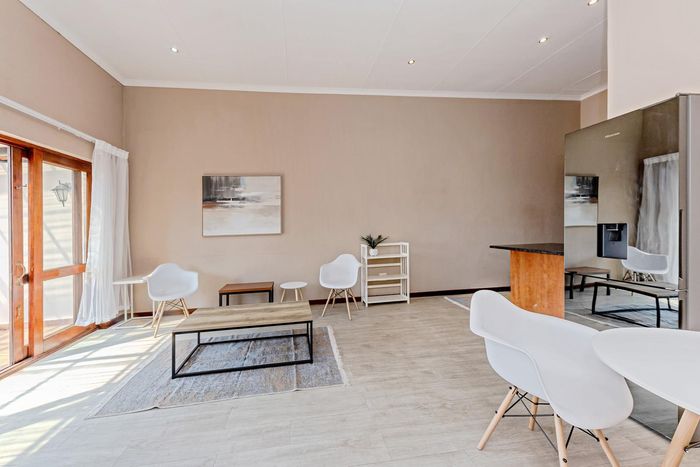 Relaxed Radiokop living steps from Wilgeheuwel Hospital and shopping, with sunlit open-plan living opening onto a completely private garden. Two bedrooms, one bath, covered plus open parking.