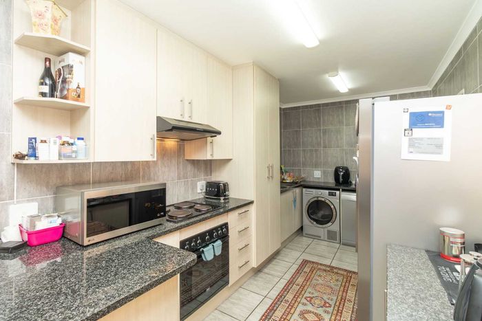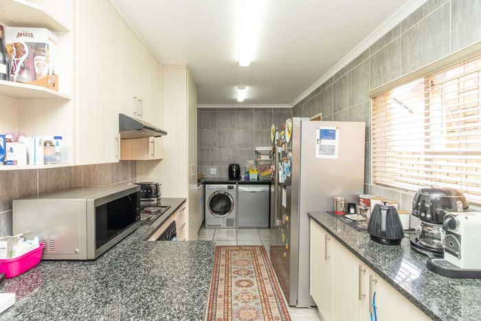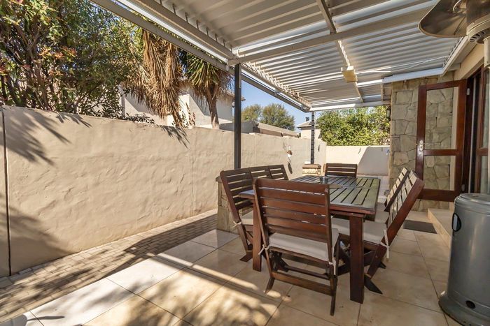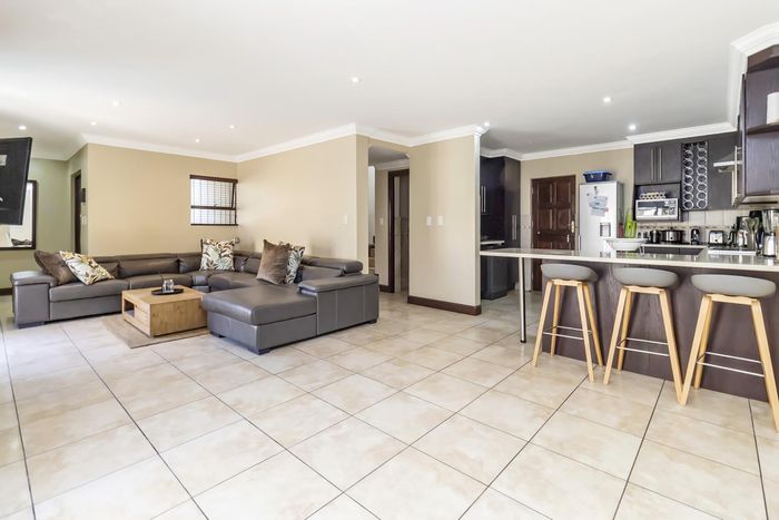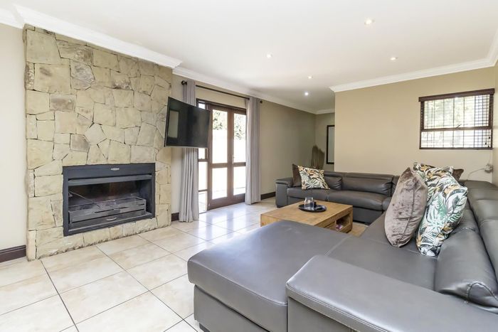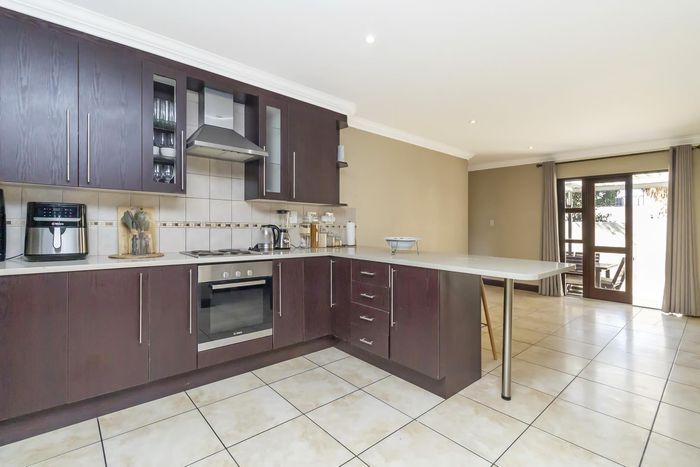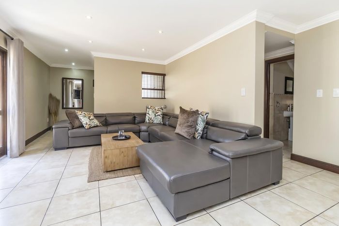 Three-bedroom property with open plan living, double garage, outdoor braai area, and 24/7 security. Close to amenities.