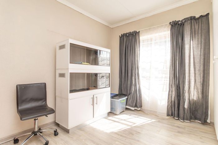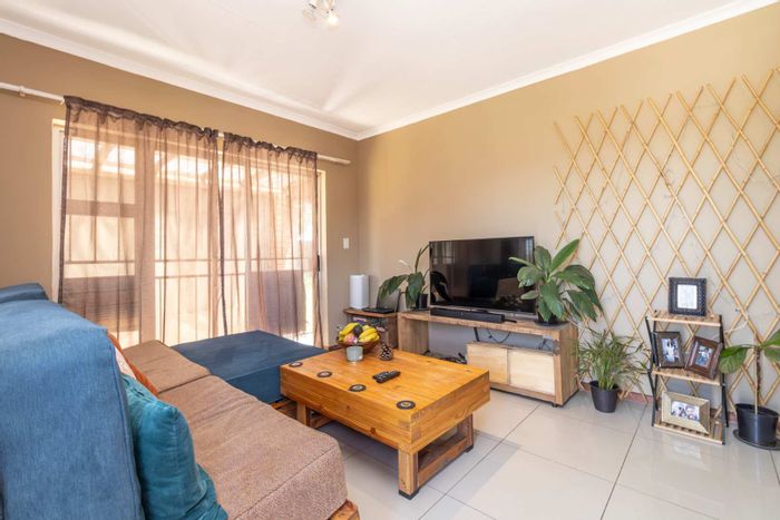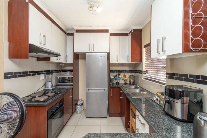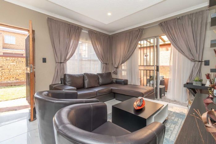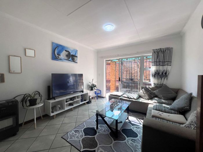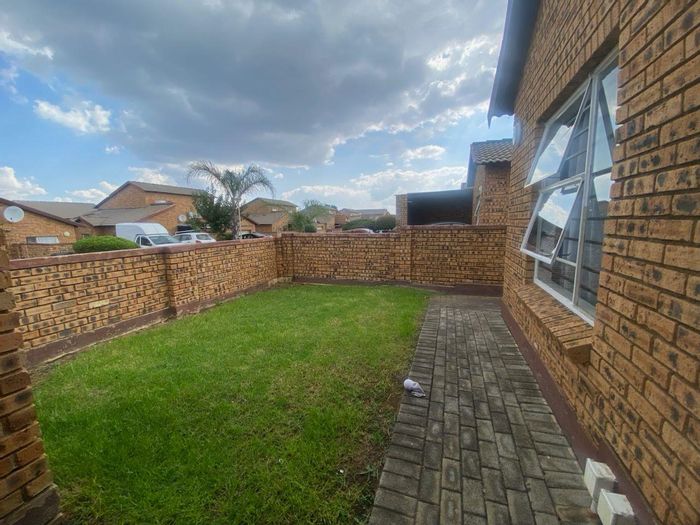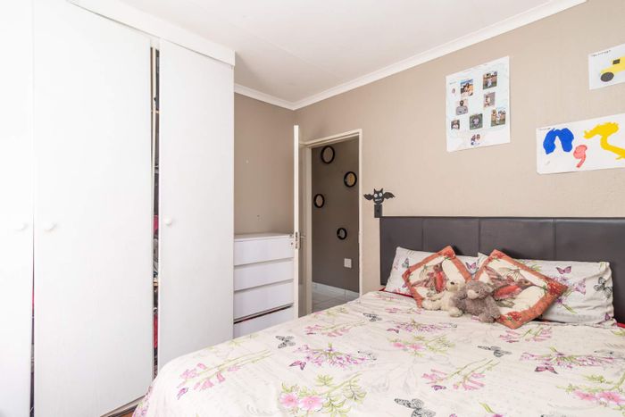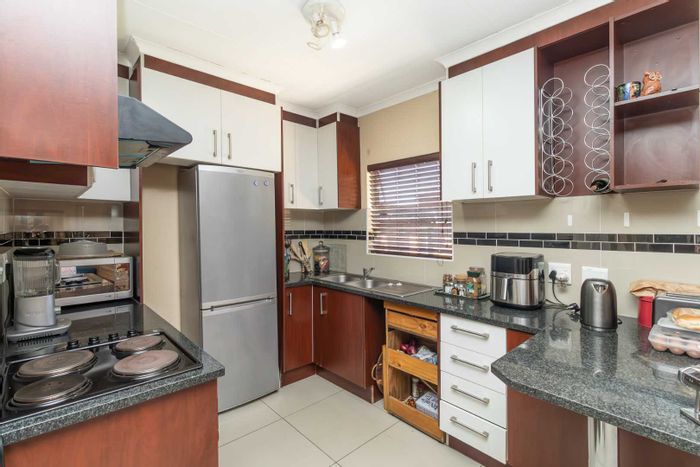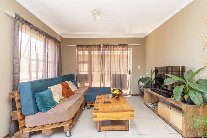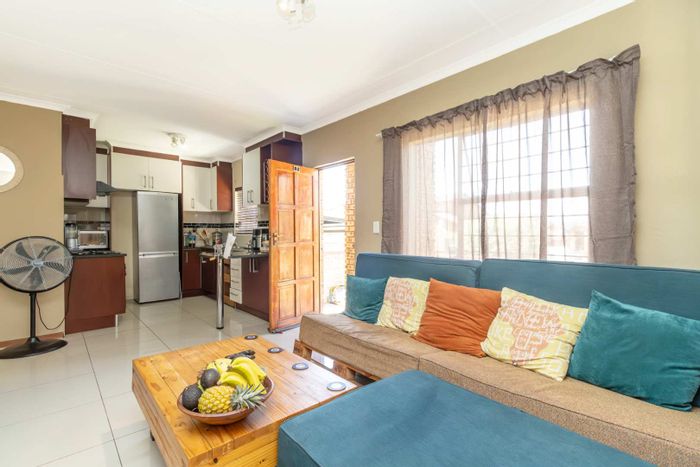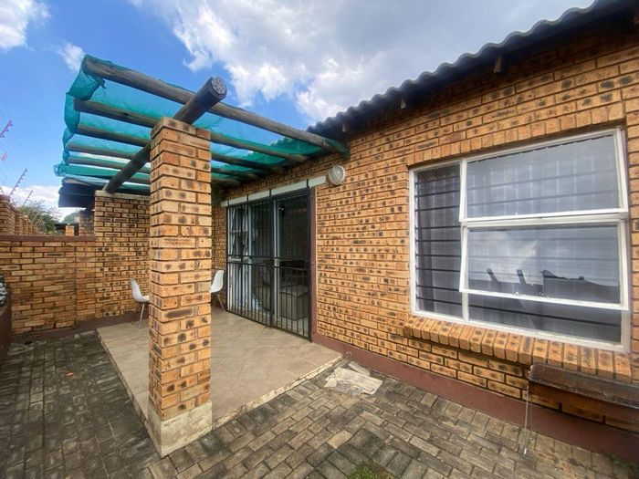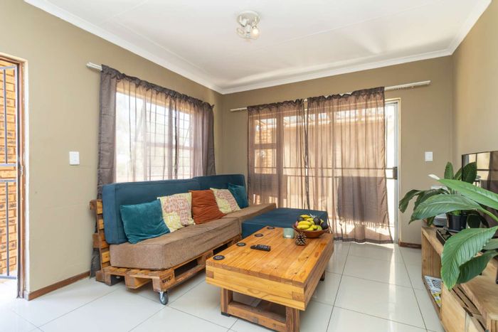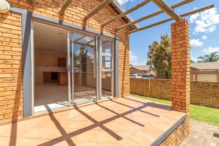 Family-friendly living in Honeypark, Roodepoort, with a wrap-around private garden on a corner stand, the largest in the complex, modern kitchen and enclosed patio. Three beds, two baths, single garage.