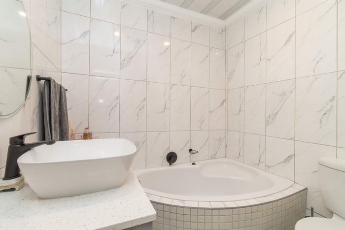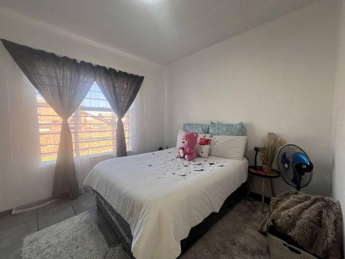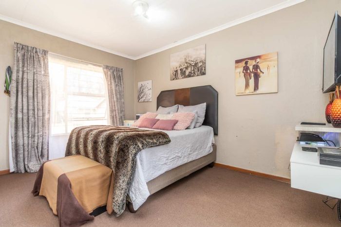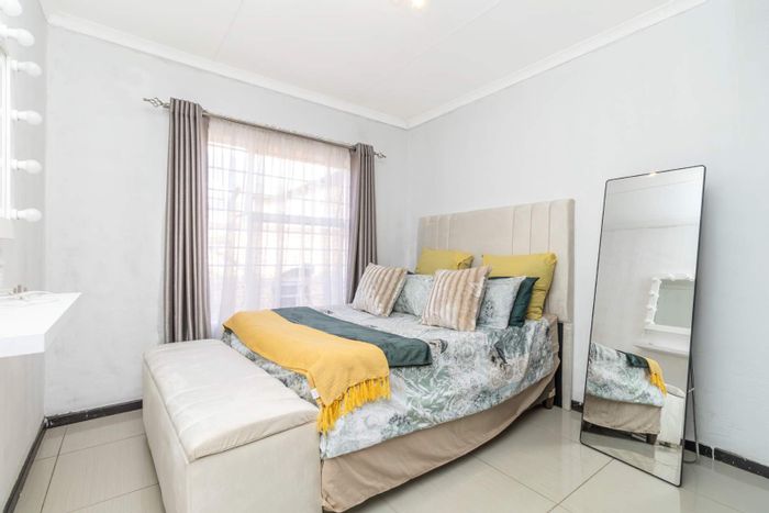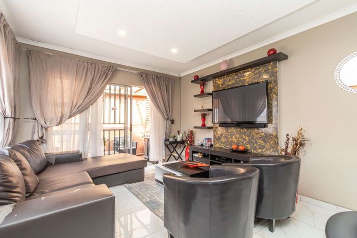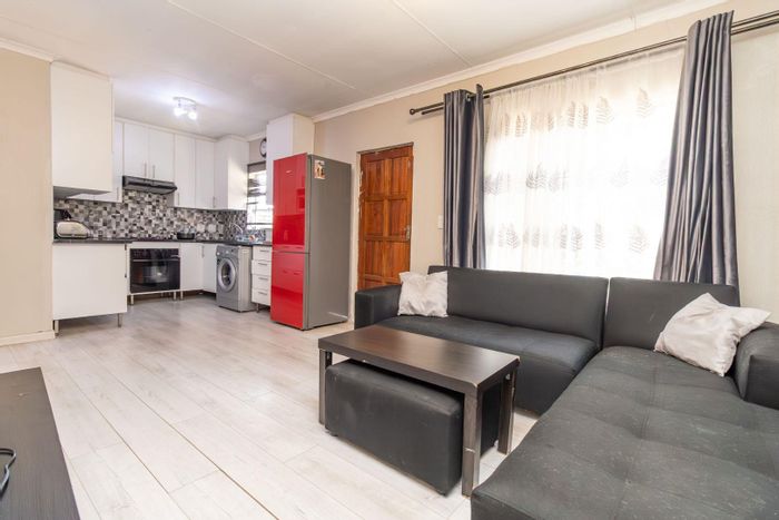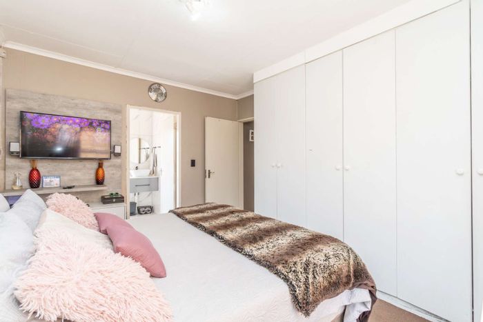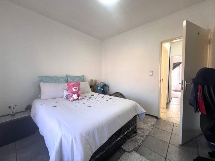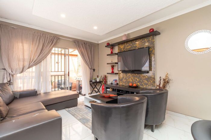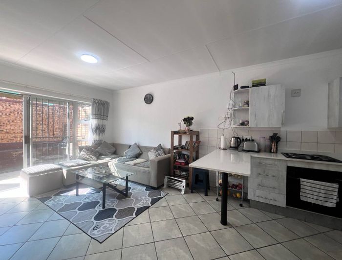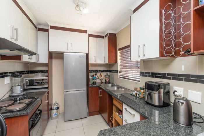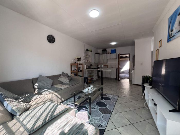 Family-friendly living in Honeypark, Roodepoort, with a wrap-around private garden on a corner stand, the largest in the complex, modern kitchen and enclosed patio. Three beds, two baths, single garage.