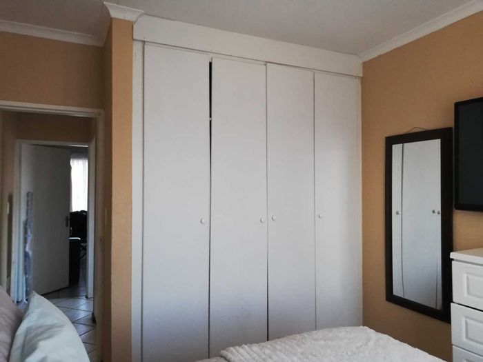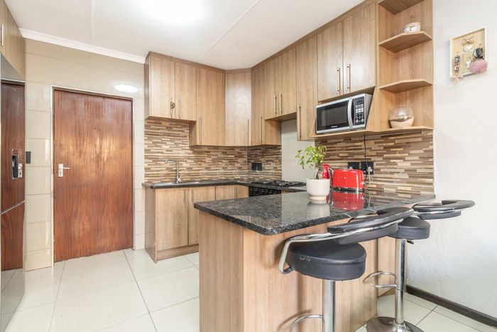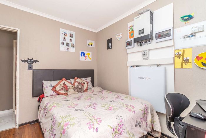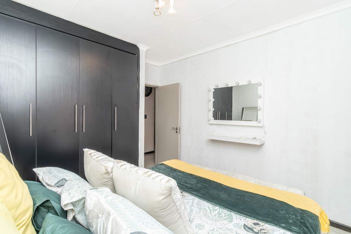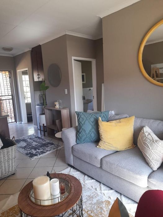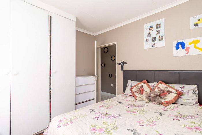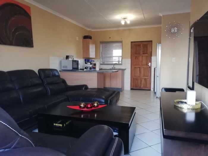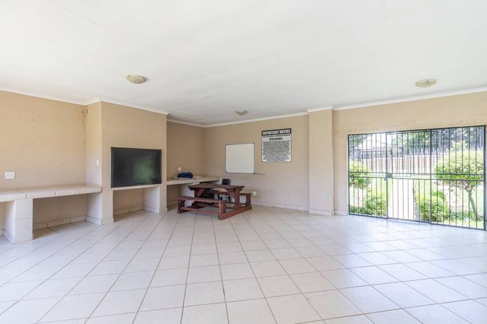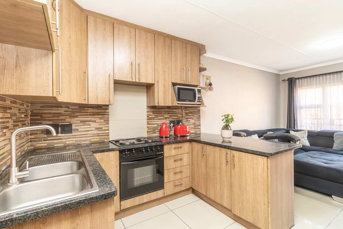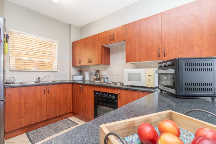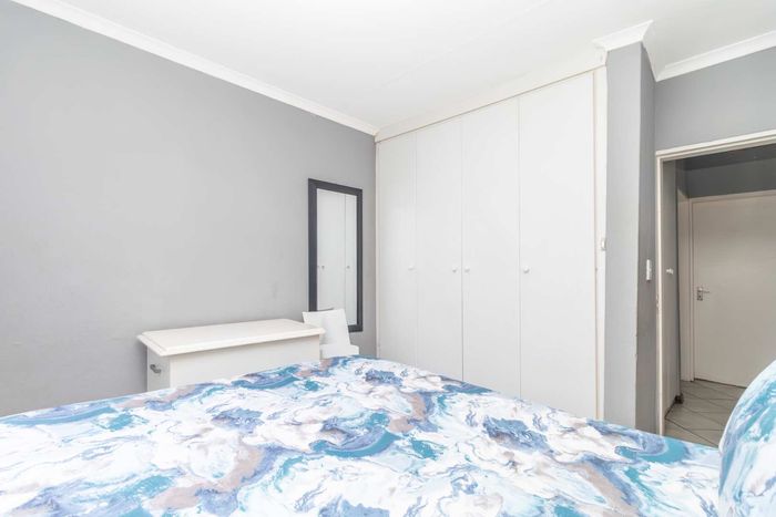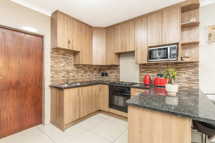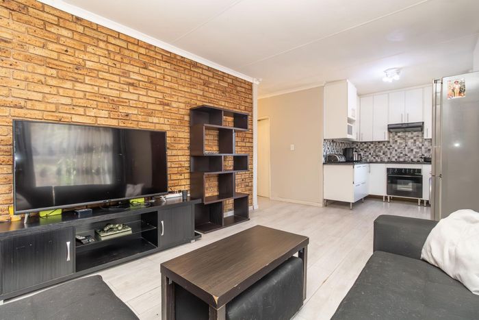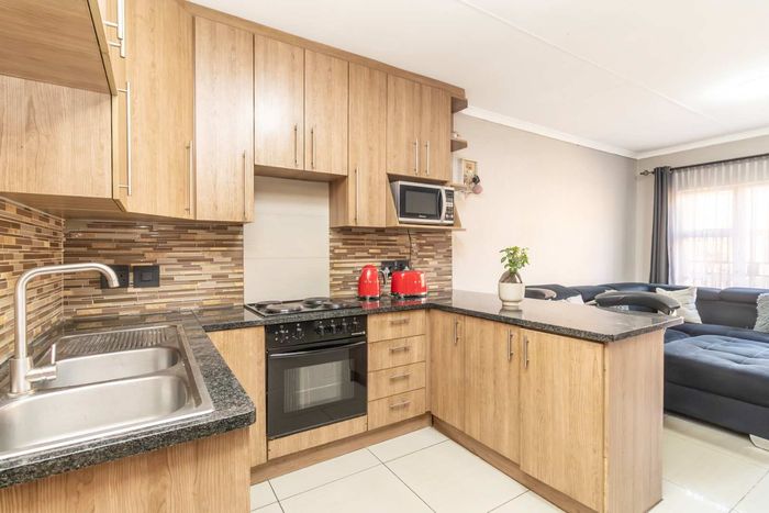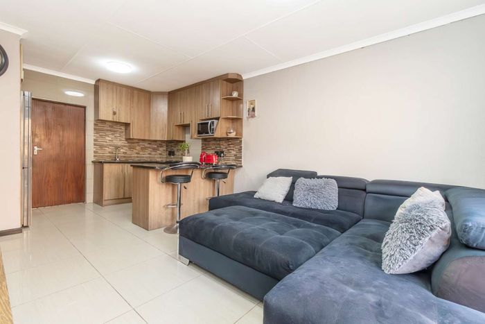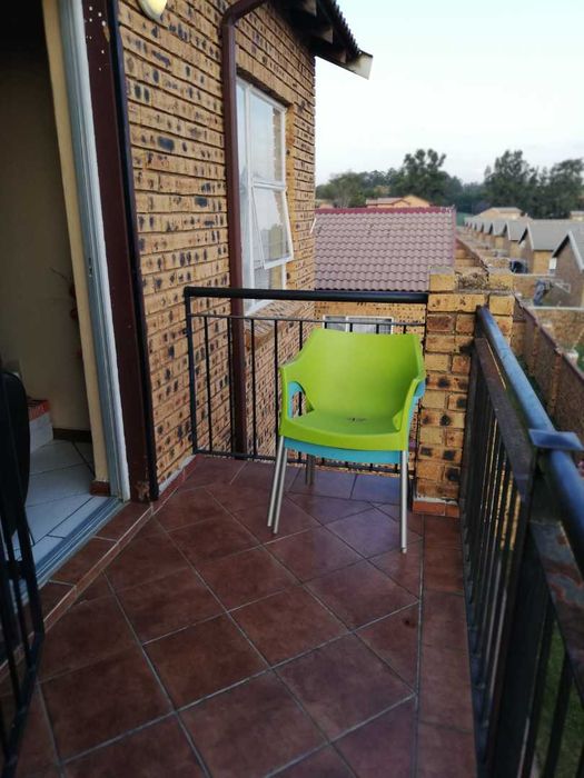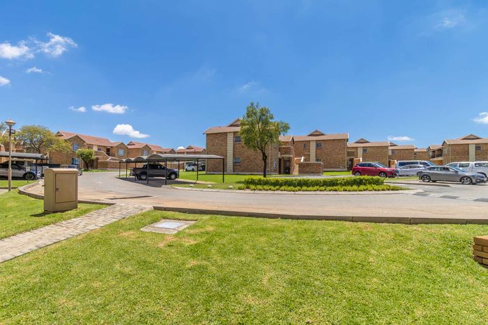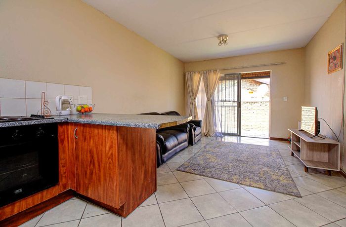Enjoy relaxed city living and mountain-view evenings in Honepark, Roodepoort, with an open-plan lounge, private balcony, kiddies' playground, 24-hour security — two bedrooms, one bath, covered parking.