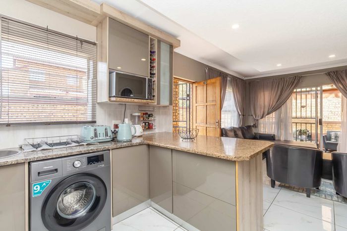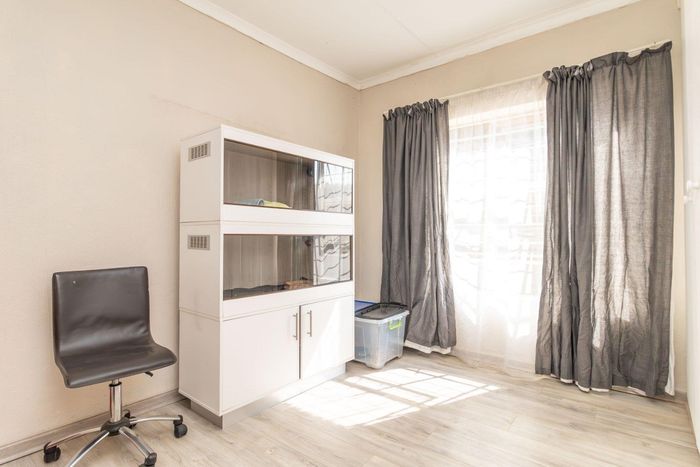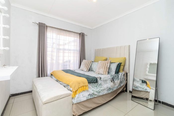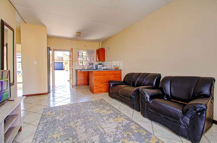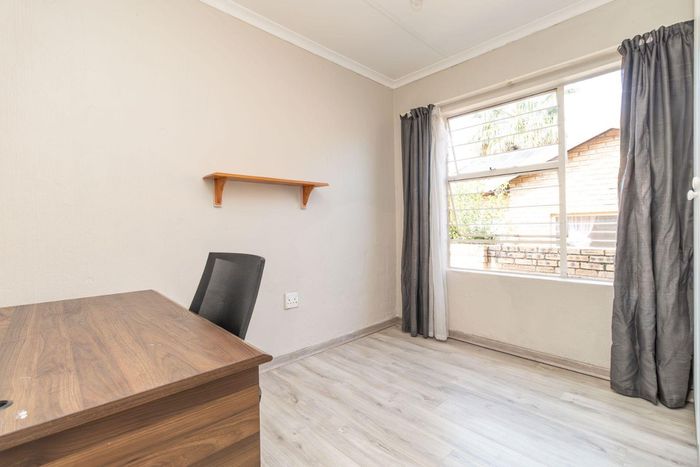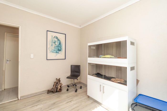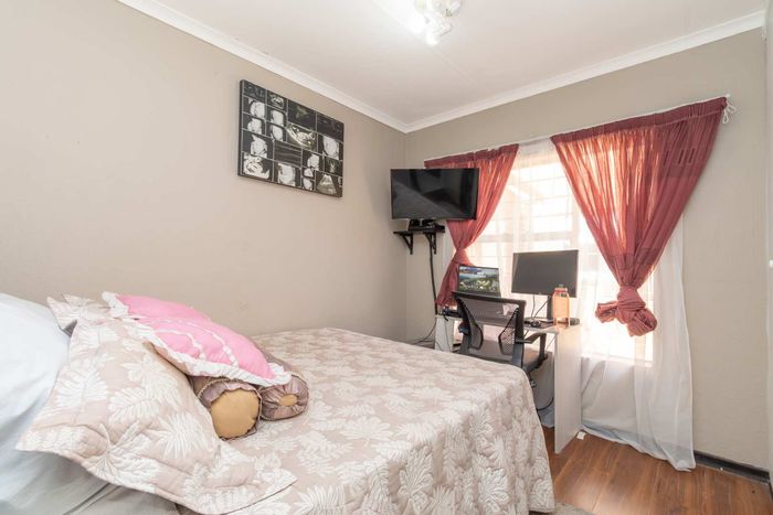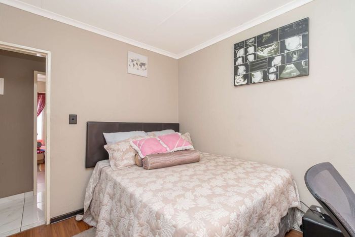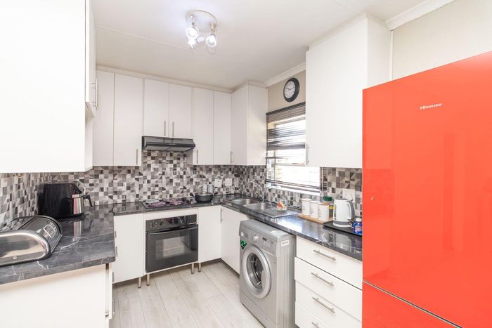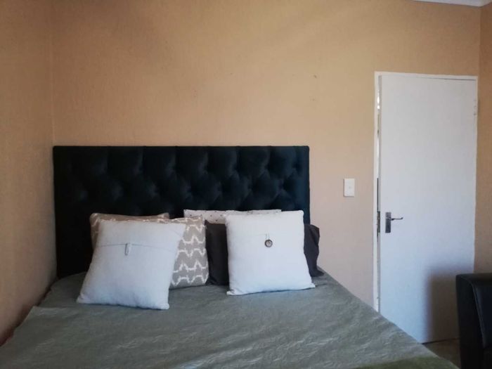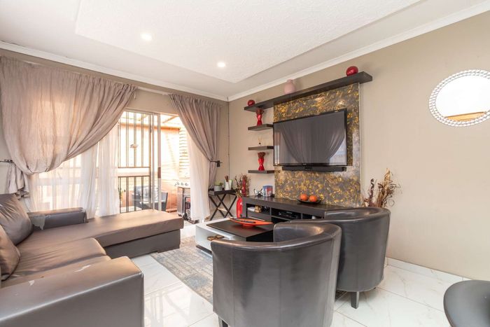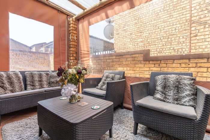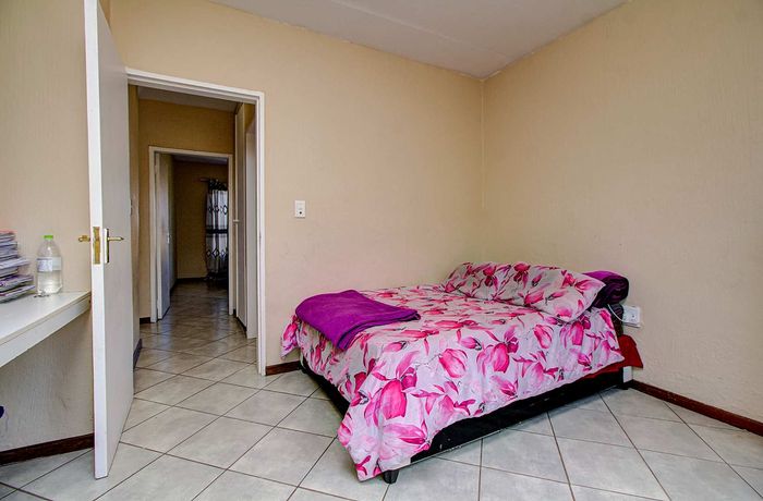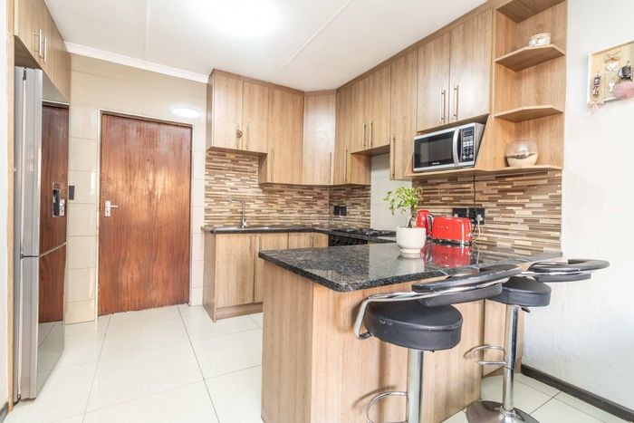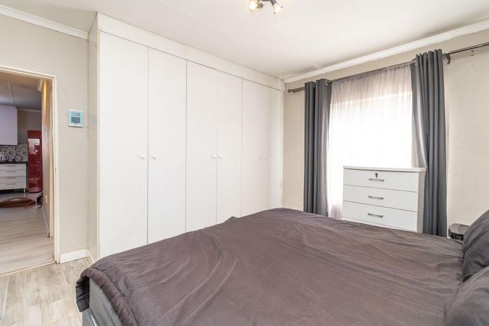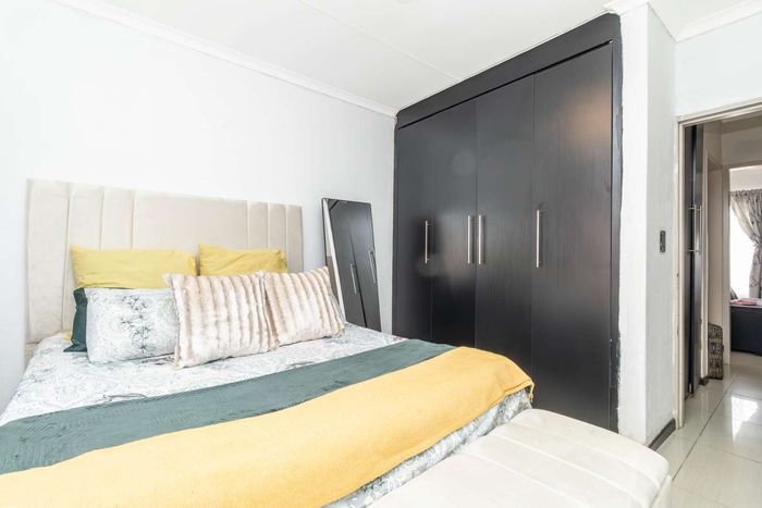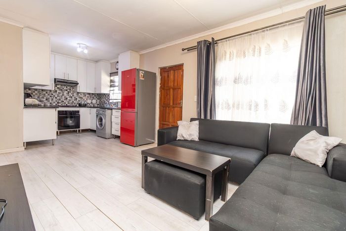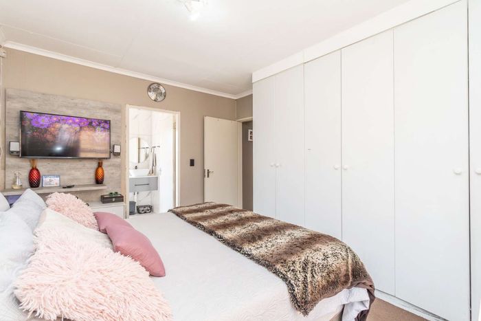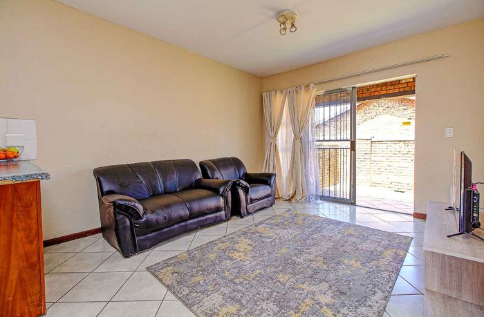 Enjoy relaxed city living and mountain-view evenings in Honepark, Roodepoort, with an open-plan lounge, private balcony, kiddies' playground, 24-hour security — two bedrooms, one bath, covered parking.