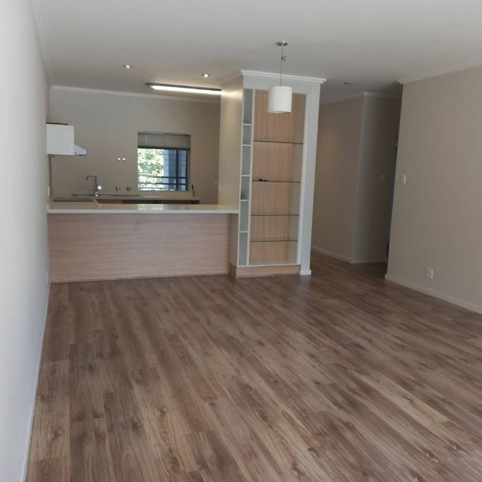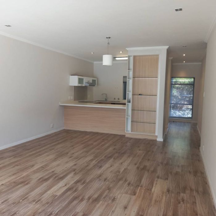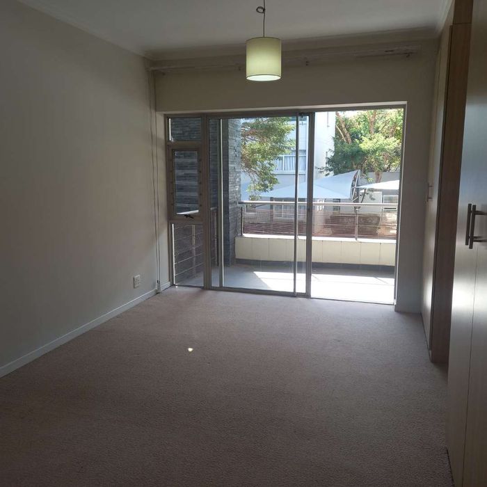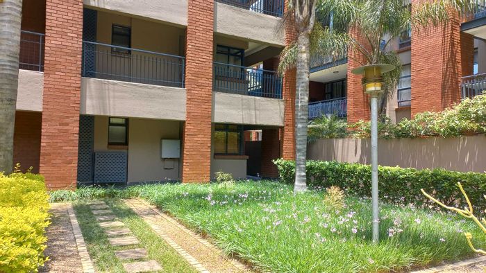Lock-up-and-go garden apartment minutes from Sandton and Rivonia ramps, with open-plan living opening to an undercover patio and built-in braai — communal pool, clubhouse and 24/7 security.