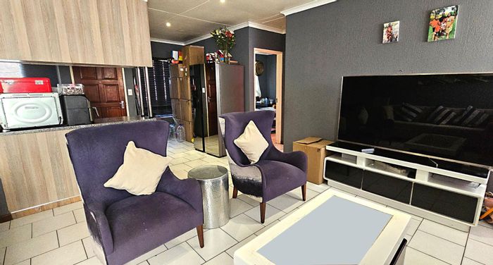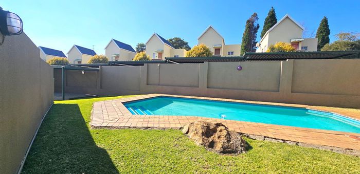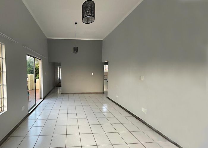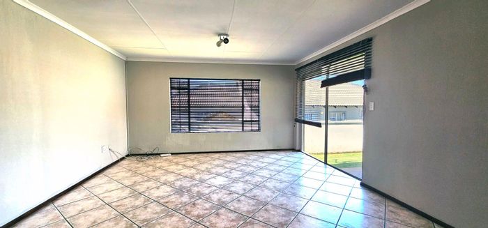 Pet-friendly townhouse with two private astro-turf gardens in Radiokop, close to schools and amenities. Open-plan kitchen, three sunlit bedrooms (two garden-facing), two bathrooms, garage and visitor parking.