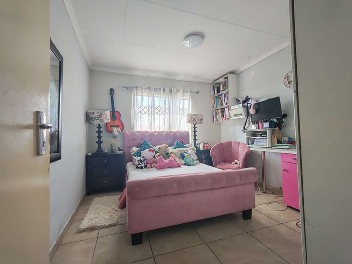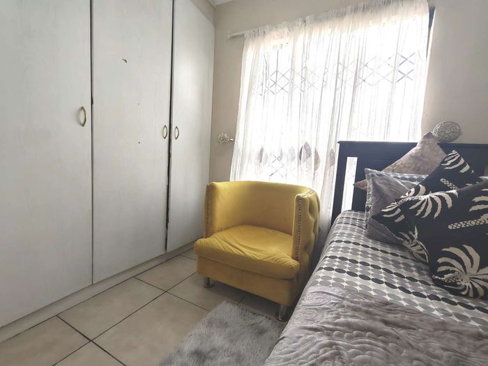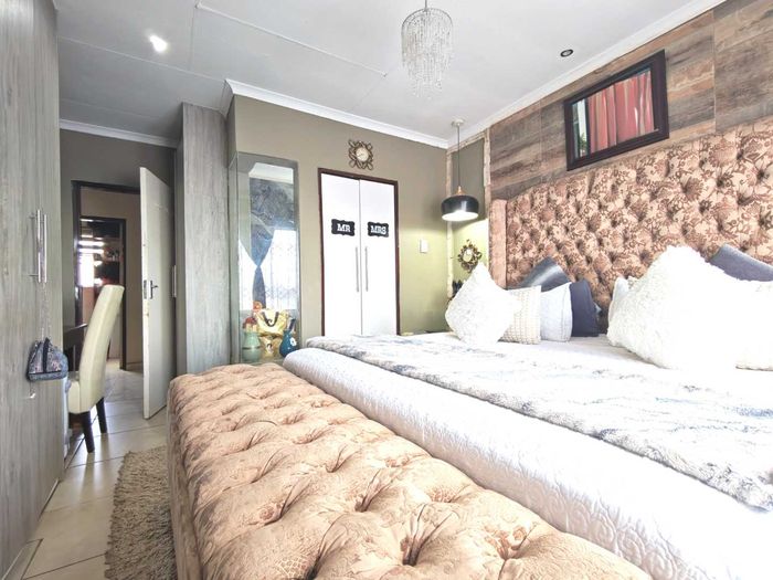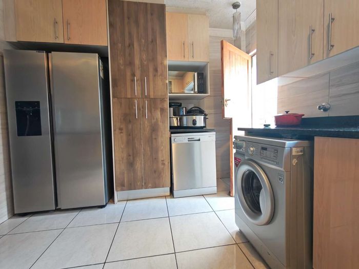 Enjoy contemporary family living in Cosmo City's vibrant heart, close to shops and schools; secure paved yard with 5kVA solar, three bedrooms, two bathrooms and double automated garage.
