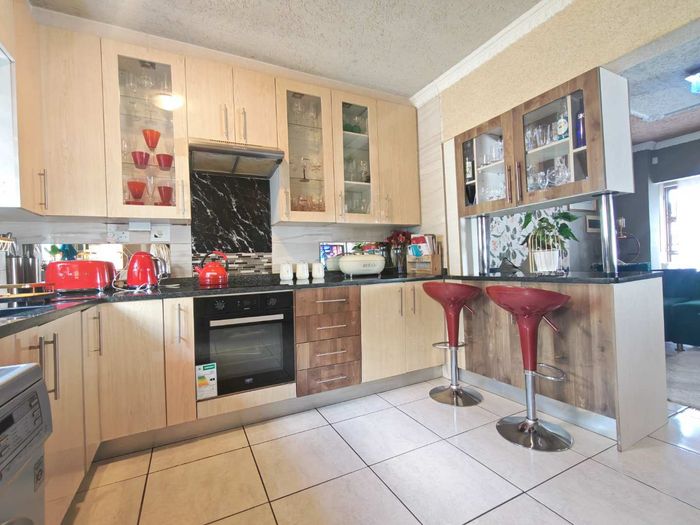 Family-friendly living in vibrant Cosmo City, steps from Cosmo City Mall and Malibongwe Drive, featuring a modern kitchen with breakfast nook, three bedrooms and 2.5 bathrooms.