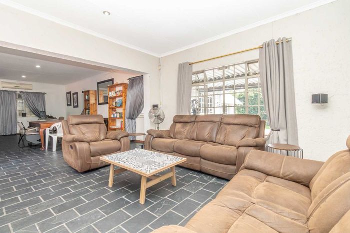 Relax in a family oasis with pool and cottage in a private, leafy setting — open-plan living, modern gas kitchen, solar-powered comforts, three beds, three baths, double garage.