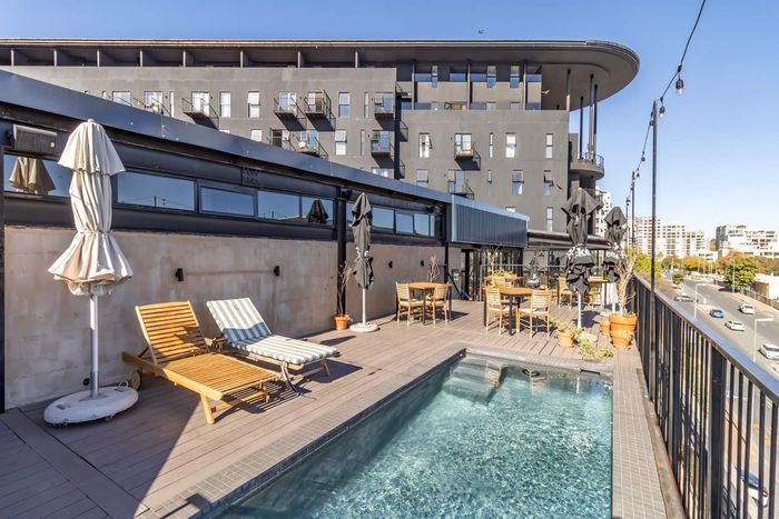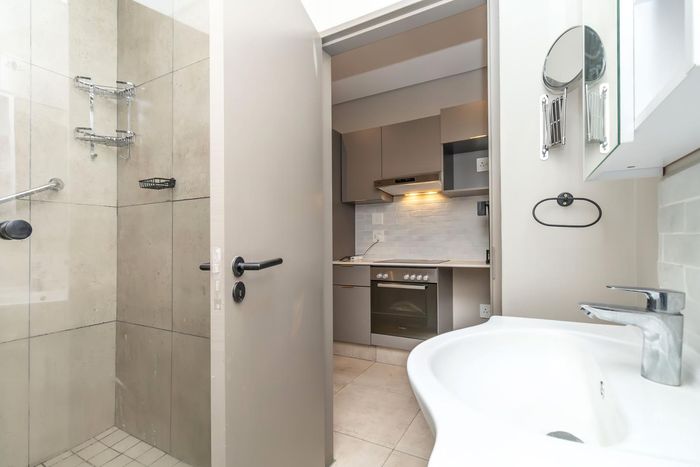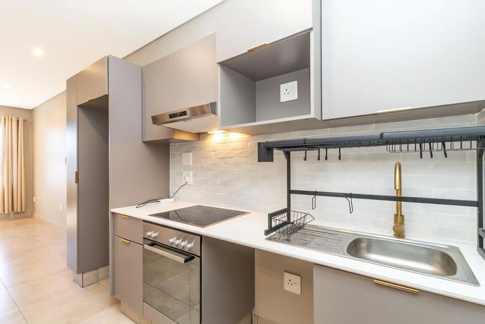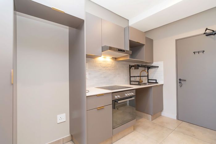 Modern studio apartment in Sandton hotel with amenities like meeting rooms, restaurant, bar, and top-notch security for professionals.