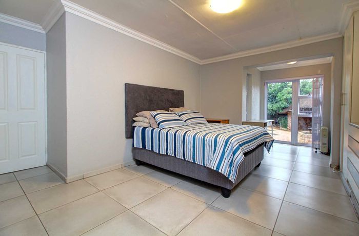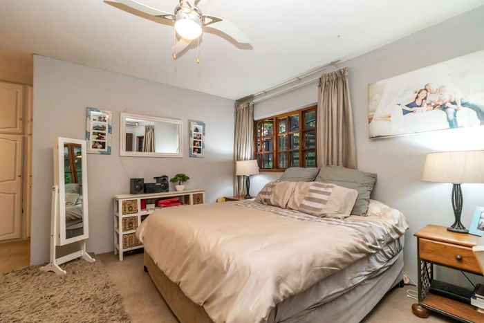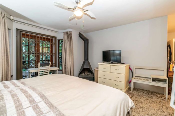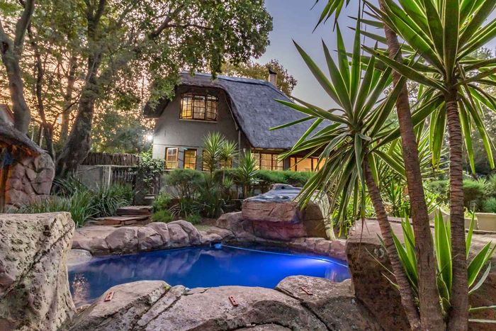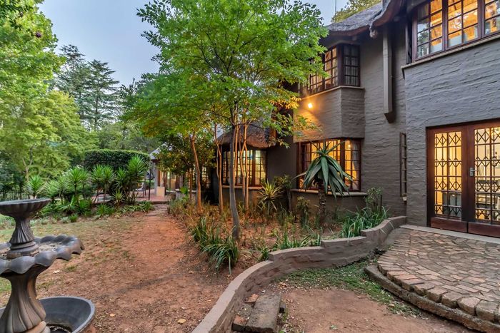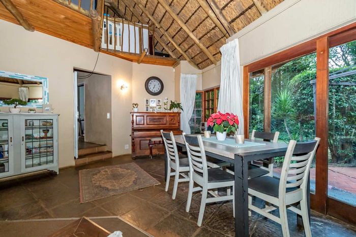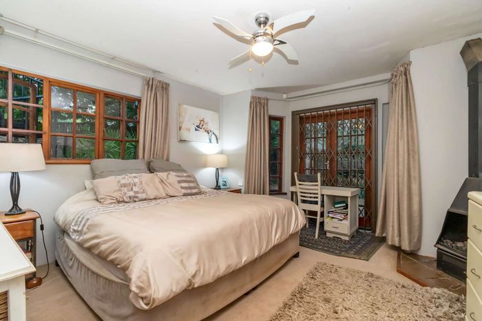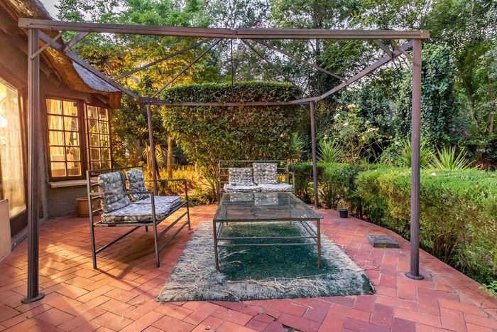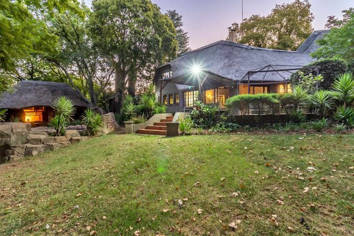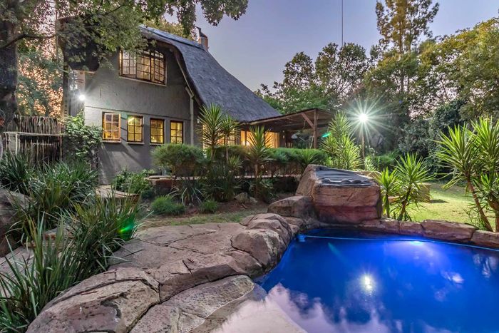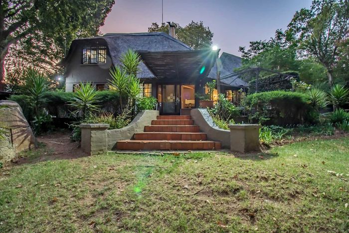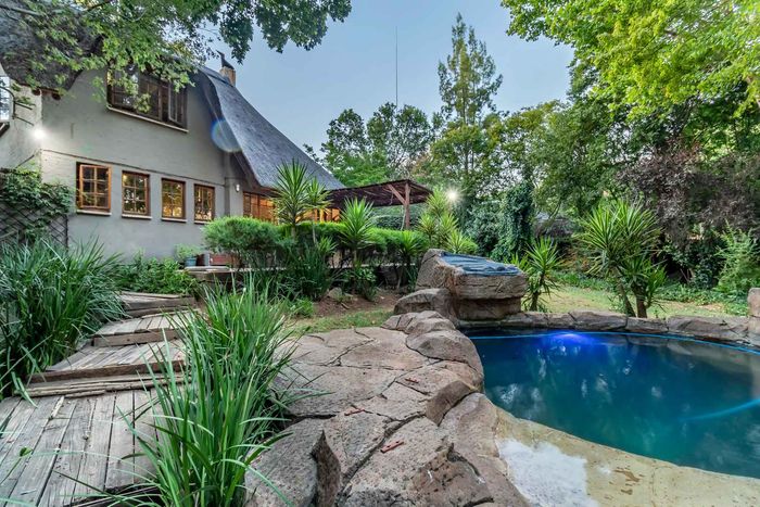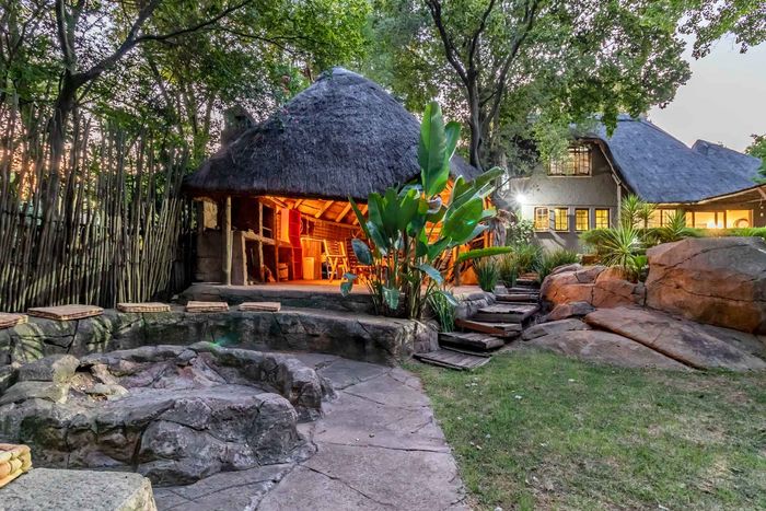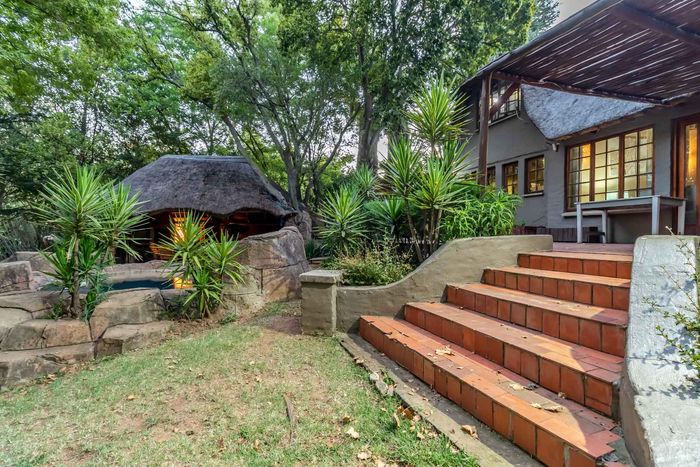 Beautiful Paulshof property with main house, Bachelor's Loft, lush garden, entertainment areas, security features, and backup power. Ideal for nature lovers.