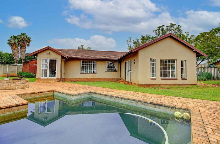 Four bedrooms, two bathrooms, and three garages in a spacious home with a renovated pool and separate flatlet.