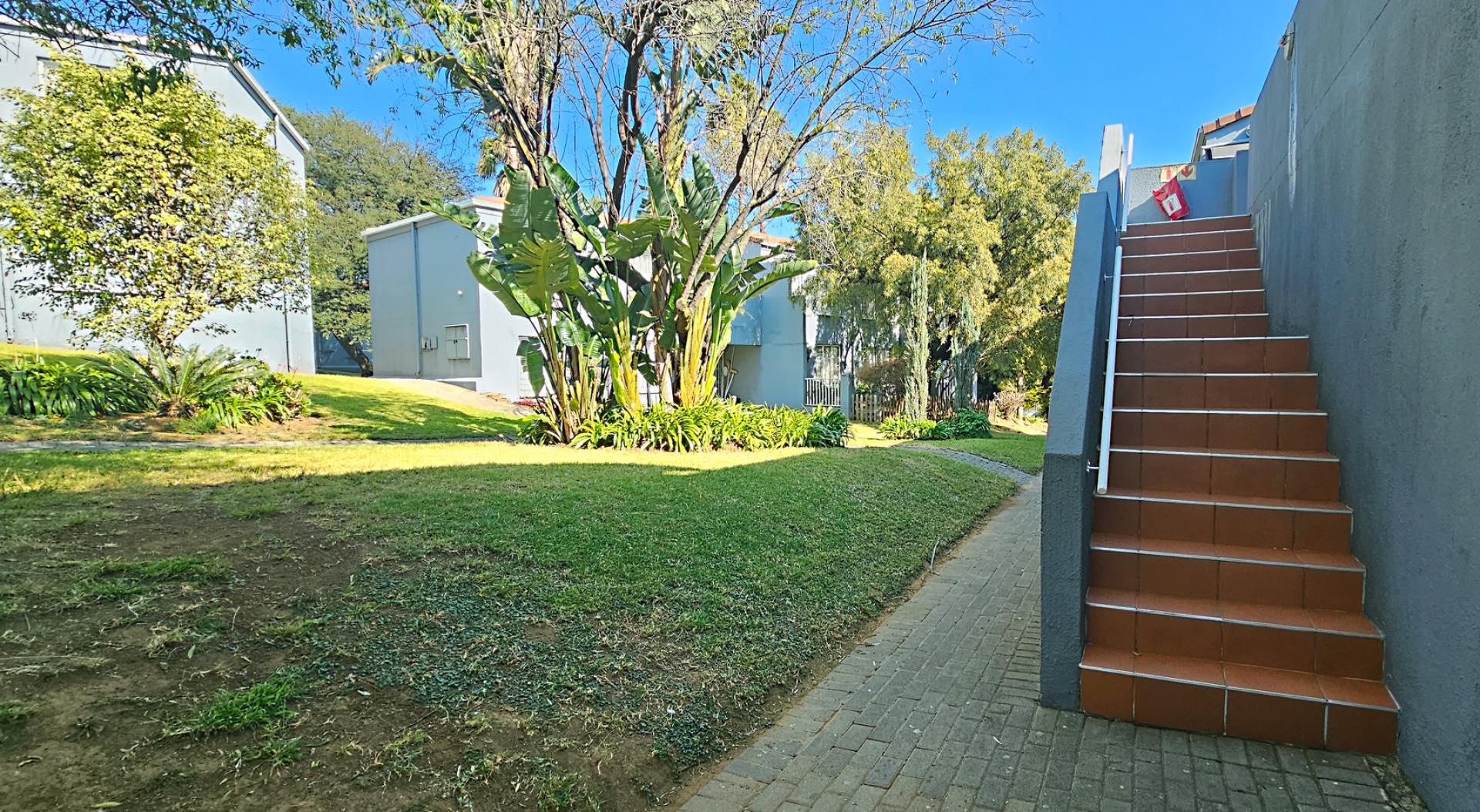 This first-floor apartment sits quietly in Radiokop, overlooking the well-kept lush gardens.