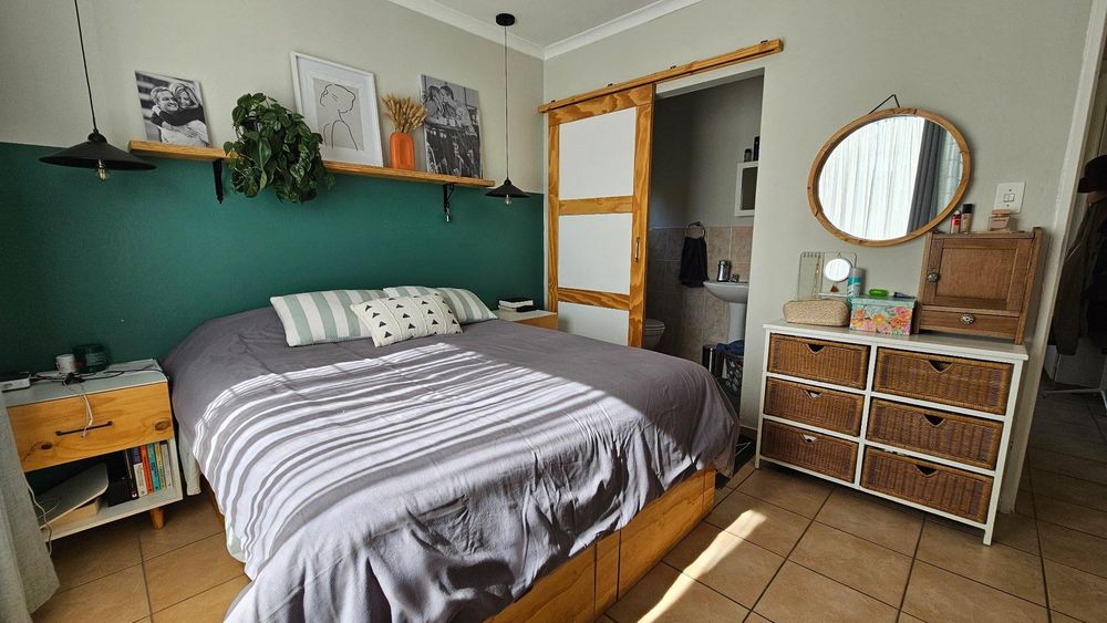 This home features two bright bedrooms and two bathrooms, each corner exuding comfort and style. With tiles throughout and generous built-in cupboard space, you'll find both functionality and elegance in every detail. The property also includes double garage doors with direct access from the home, as well as a single open parking space for added convenience.