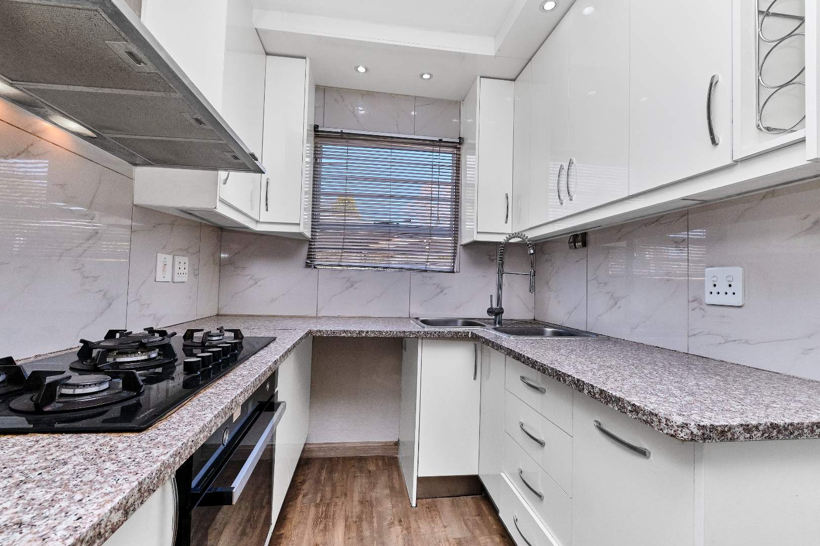 Are you a first time homebuyer or looking to downsize? Look no further—this home is perfect for you. Featuring a modern, open-plan kitchen with ample cupboard space, a gas hob, space for one under-counter appliance, and a single fridge, this property combines style and functionality. The spacious lounge and dining area seamlessly connect to a fabulous covered patio through a sliding door. The patio, equipped with a built-in braai and overlooking a small private garden, is perfect for entertaining guests. During winter, you can close the patio with canvas blinds to enjoy it year-round.