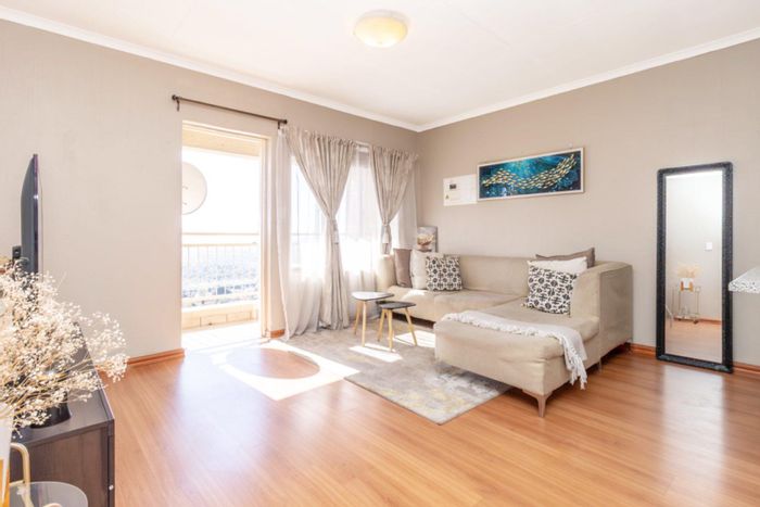 Balcony with panoramic views and a sleek kitchen anchor this open-plan apartment in a secure complex with scenic walking trails and easy amenities access — two bedrooms, one bathroom, covered parking.