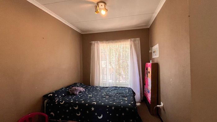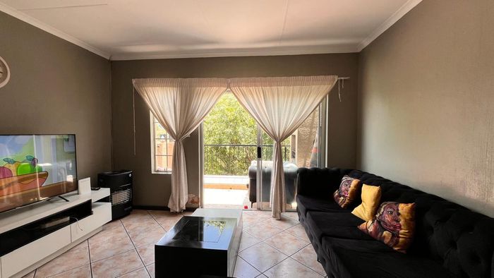 Enjoy relaxed city living and mountain-view evenings in Honepark, Roodepoort, with an open-plan lounge, private balcony, kiddies' playground, 24-hour security — two bedrooms, one bath, covered parking.