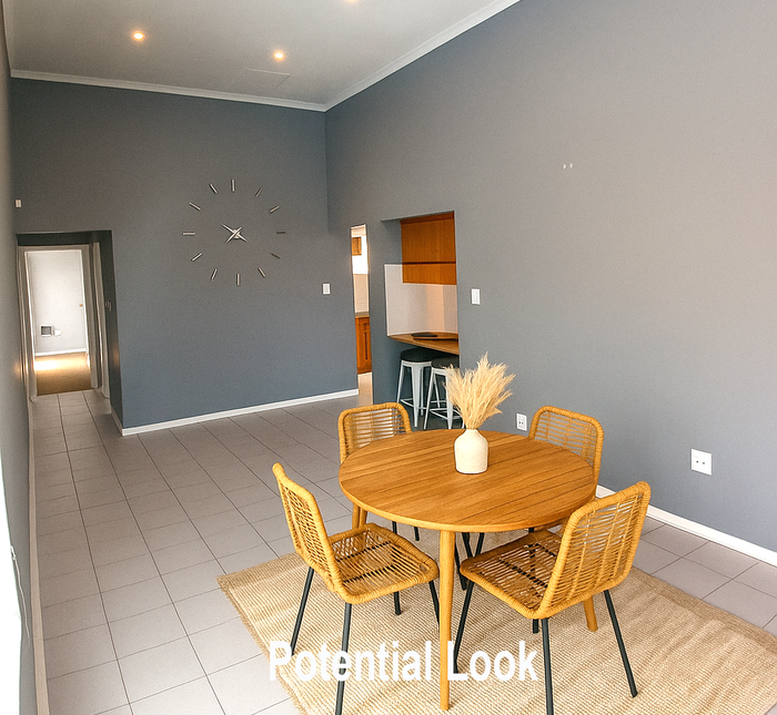 Relaxed suburban living in Honeydew Ridge, steps from Clearwater Mall and Panorama Sports Complex, featuring a covered patio with pet-friendly garden, open-plan kitchen, two bedrooms, two bathrooms and double garage.