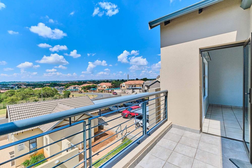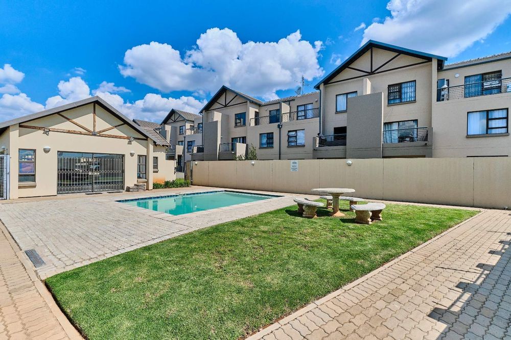 Immerse yourself in breathtaking sunset views overlooking the lush green fairways of the golf course from the comfort of this elegant top-floor two-bedroom residence. Situated in the sought-after Fairway Crest Estate in Ruimsig, this home offers not just a picturesque setting but also easy access to a range of conveniences. With shops, schools, a university, and the golf course all within walking distance, you'll find everything you need just moments away.