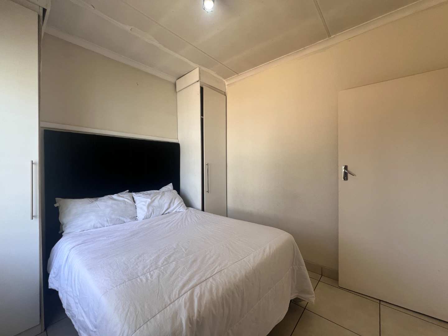 This complex, set in a quiet cul-de-sac, is well-located at the corner of the complex; both private and secure. With a sunny upstairs entrance into a spacious lounge and compact kitchen, space is maximised. The two bedrooms are both sunny and surprisingly large, each comfortably fitting a double/queen-size bed. The bathroom is both spacious and neat.