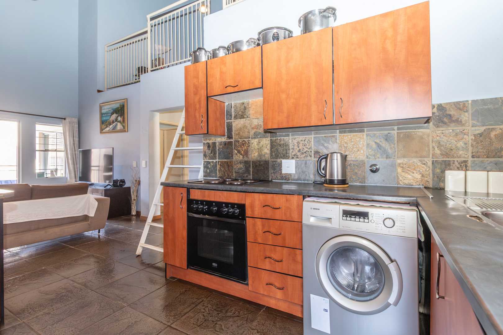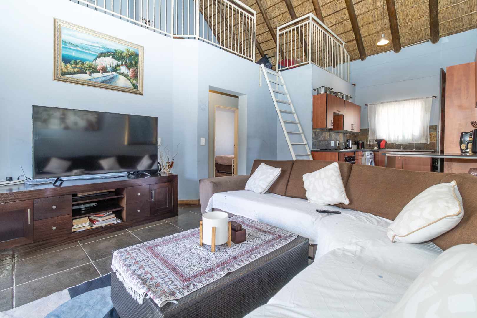 Enjoy outdoor living on the covered balcony, complete with a built-in braai. The unit boasts two bathrooms, which one is en-suite for added comfort and convenience.