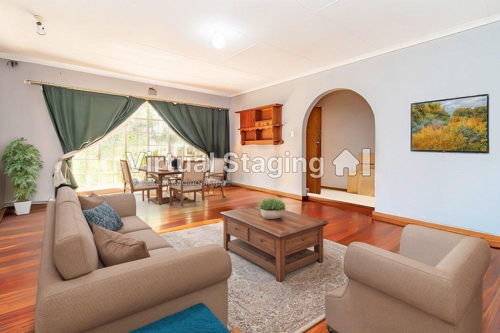 The living area boasts wooden flooring, adding a touch of classic charm and character to the home. Imagine cozy family gatherings and entertaining friends in this inviting space. The large kitchen is perfect for those with big ideas, offering plenty of room to design a culinary haven that suits your lifestyle.