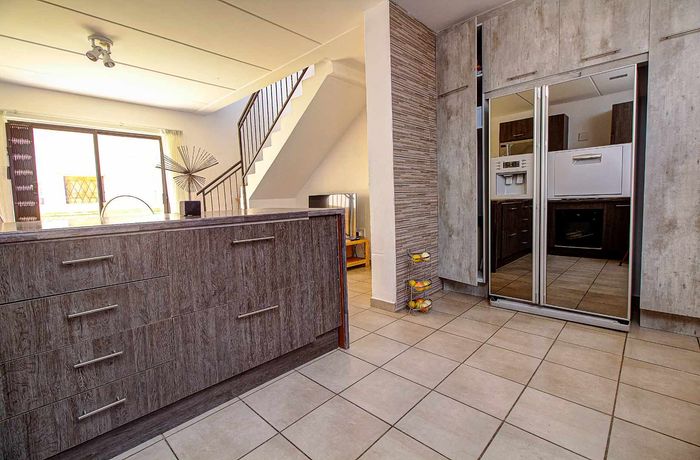 The three bedrooms and two bathrooms are situated on the third and fourth levels of this property making this home feel like a mini mansion in a holiday resort. Plus points to these rooms are the amount of cupboard space you will hardly ever find in these type of properties today. The main bedroom is en-suite fitted with large walk in shower, rounded off with elegant tiles and bathroom fittings. The second and third bedroom shares the second bathroom which is fitted with bath and shower combination. This second bathroom is also been renovated with the same elegance as the main bathroom. All these rooms are tiled throughout giving a seamless unified flow to this home.