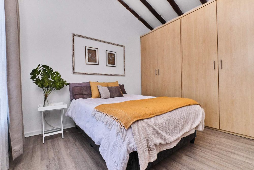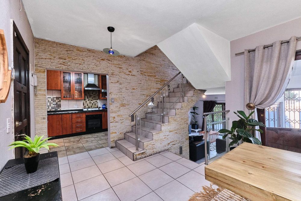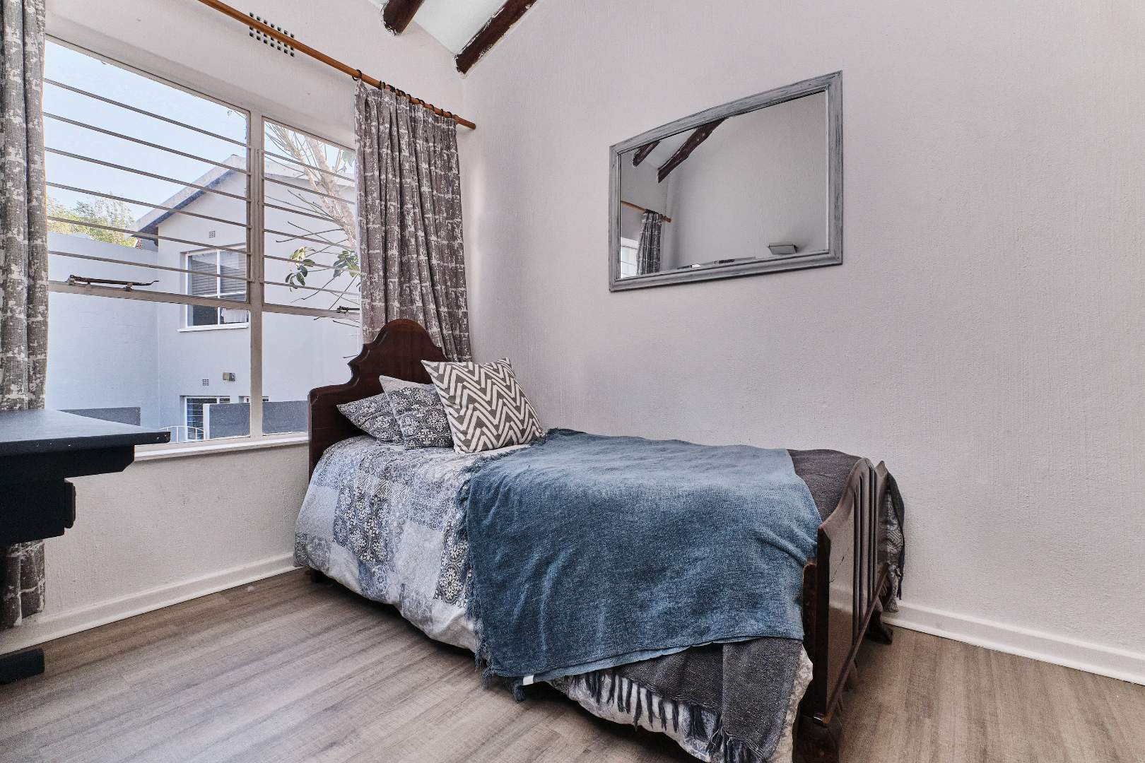 The three bedrooms and two bathrooms are situated on the third and fourth levels of this property making this home feel like a mini mansion. Plus points to these rooms are the amount of renovated cupboard space you will hardly ever find in these type of properties. The main bedroom is en-suite fitted with a walk in shower and oval bath, rounded off with elegant tiles and bathroom fittings. The second and third bedroom shares the second bathroom which is fitted with a large shower, renovated with slate tiles and fittings. All the bed rooms are fitted with laminated flooring throughout giving a seamless unified flow to this home.