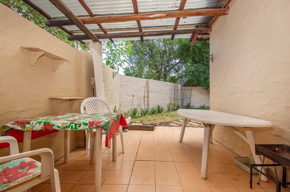 Step outside to the private garden, which has been freshly laid and awaits your personal touch. A covered patio provides a lovely space for outdoor relaxation and entertaining. The complex itself boasts beautifully landscaped gardens and a communal pool and braai area for residents to enjoy.