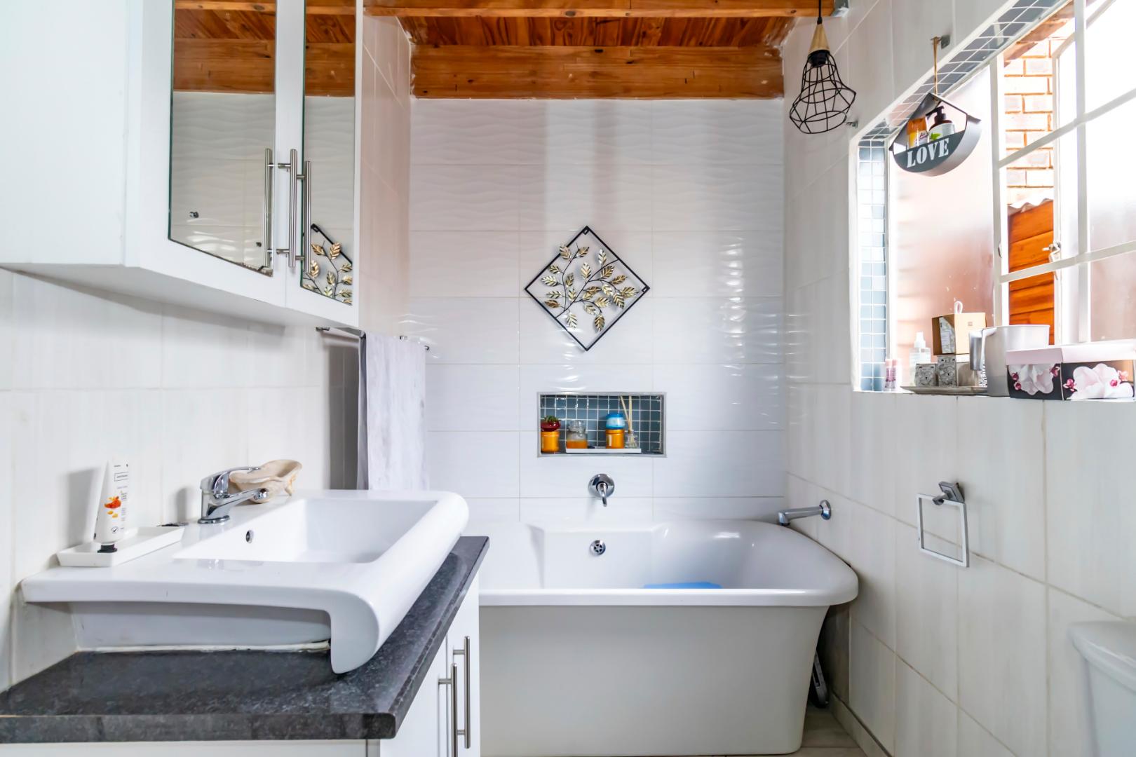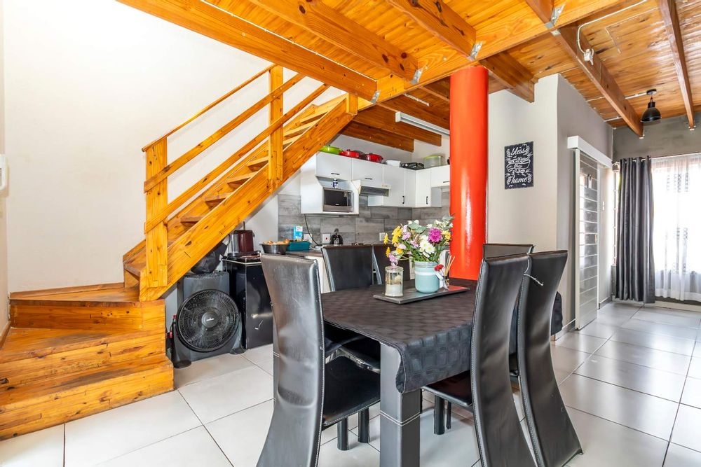 This beautifully presented property showcases a blend of tile flooring in the living areas and laminate floors in the bedrooms, creating a seamless and elegant ambiance. The loft is designed with practical built-in cupboards and a generous storage space, enhancing the functionality of the area. Parking is provided for one vehicle, with ample visitor parking available for guests. Step outside to appreciate the wrap-around garden featuring a shed for extra storage convenience. The complex offers gated security with remote entry, along with an entertainment area and a refreshing pool. Conveniently located near the highway, shops, and reputable schools.