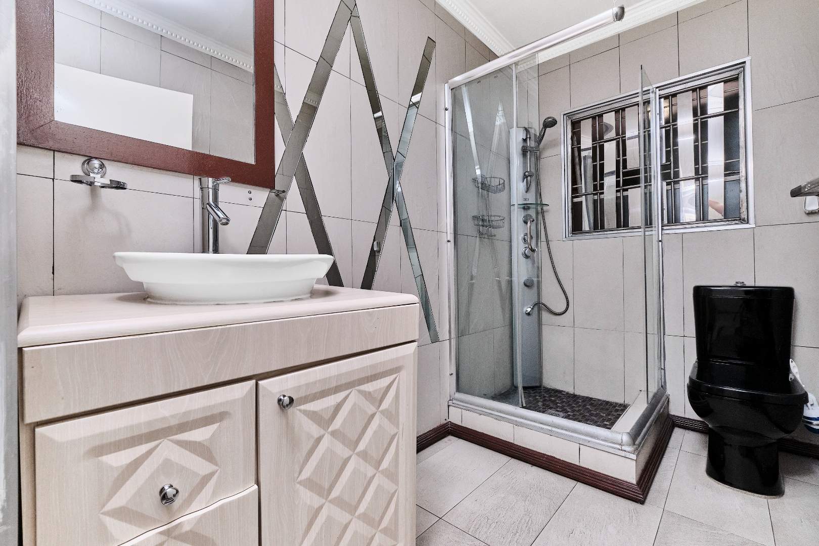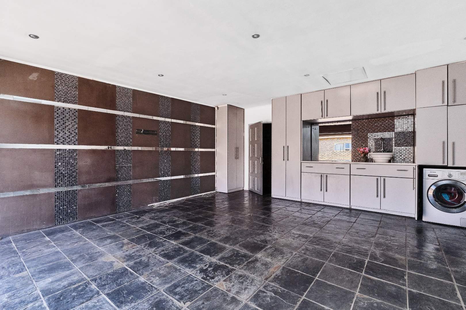 A unique feature of this property is the double garage, also renovated with built in cupboards and tiles. This space is equipped with slate tiles, grey wood cupboards, a basin, an air-conditioning unit, and downlights. Should you prefer, it can easily be unitilised as a fourth bedroom, extra lounge area or possible home gym. Additionally, there are two exclusive parking bays and ample visitor parking for convenience.