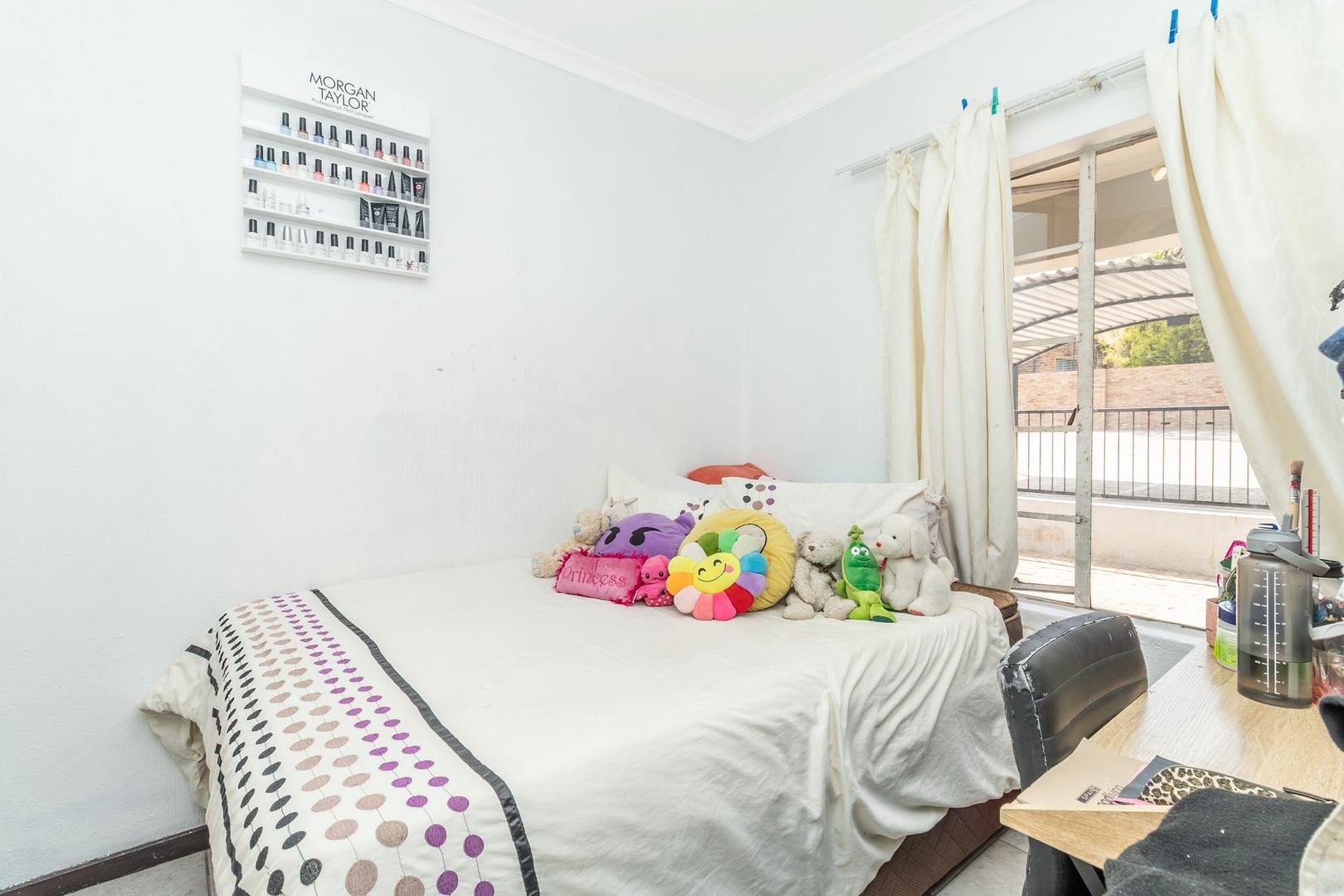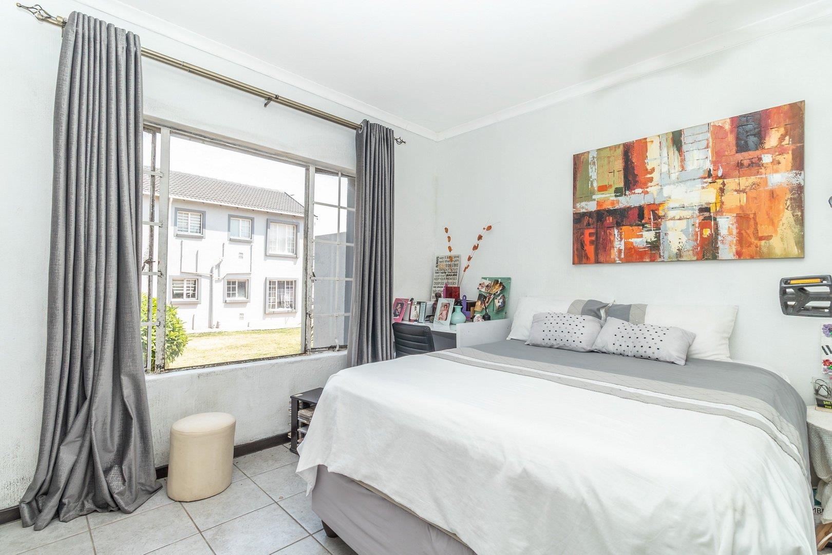 Open-plan living area with small fitted kitchen. 2 Spacious bedrooms with built-in cupboards, 1 bathroom with patio. Designated parking bay. This safe complex is close to shops and schools. Large playground for children and lots of parking for visitors. 24-hour security guards and electric fencing. Likeable, affordable and available – you’ll be glad you saw it. Call me now or send me immediately.
