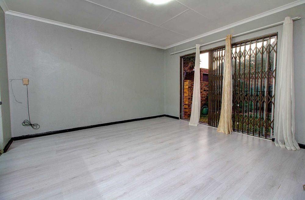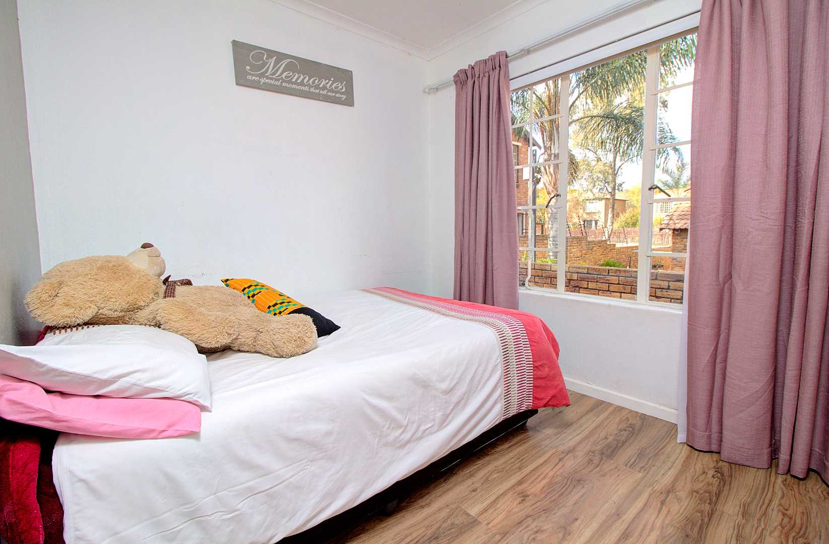 This delightful home boasts three spacious bedrooms, each fitted with laminated flooring and built-in cupboards. The main bedroom includes an en-suite bathroom for added convenience, while an additional well-appointed bathroom serves the rest of the home.