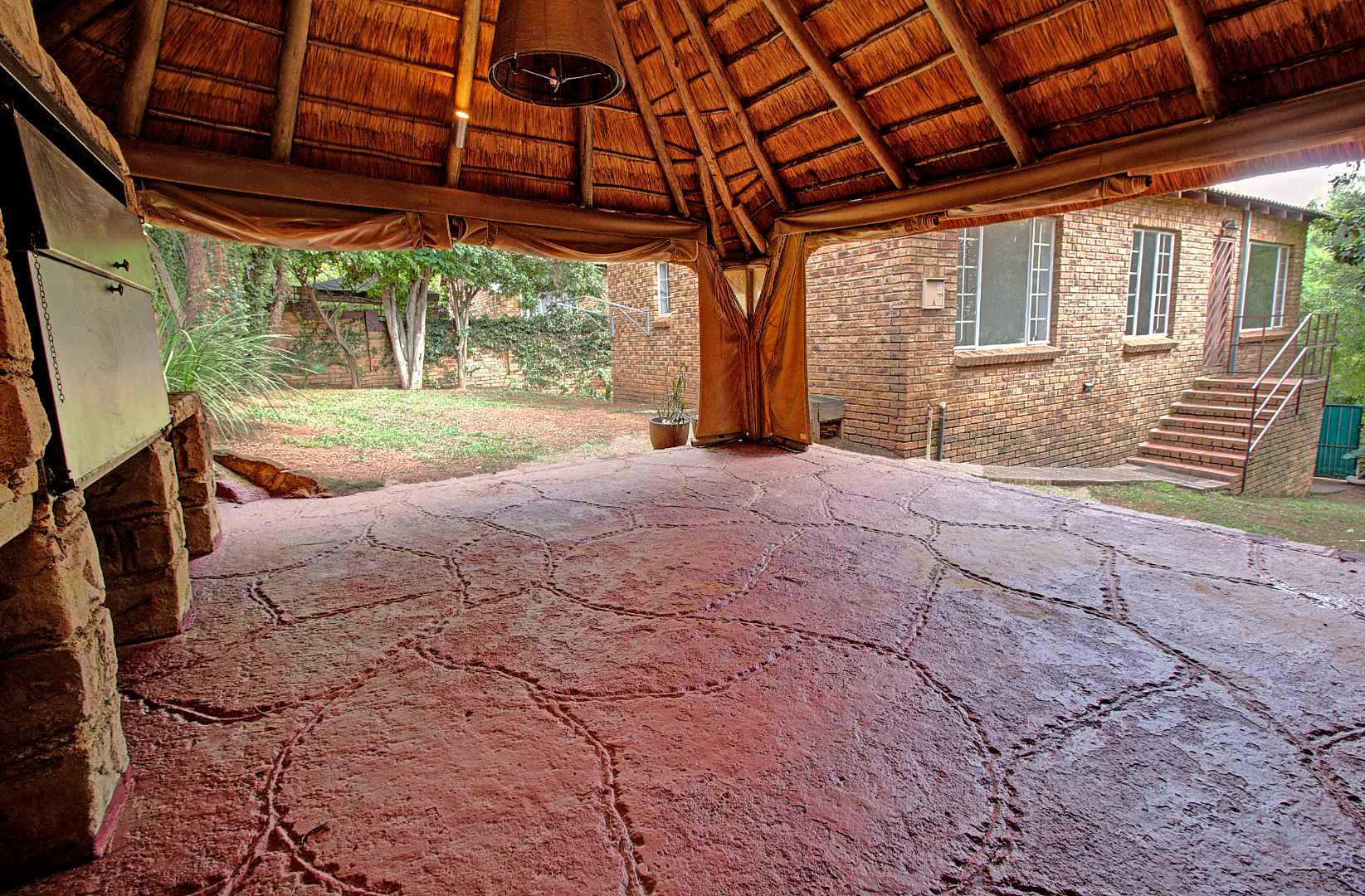 Outdoor living is a joy in the expansive garden area, featuring a spacious lapa. This outdoor haven is perfect for hosting friends and family, with a built-in braai that sets the stage for unforgettable barbecue evenings.