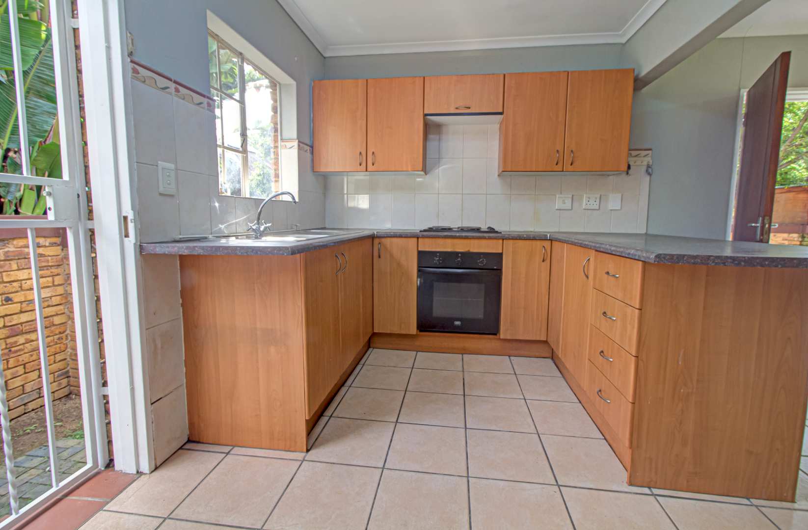 The large, open-plan kitchen is a chef's delight, boasting ample cupboard and workspace to inspire your culinary creations. The kitchen seamlessly flows into the lovely tiled living room, which opens onto a private, pet-friendly garden. This well-sized garden is a rare find, especially in a townhouse setting.