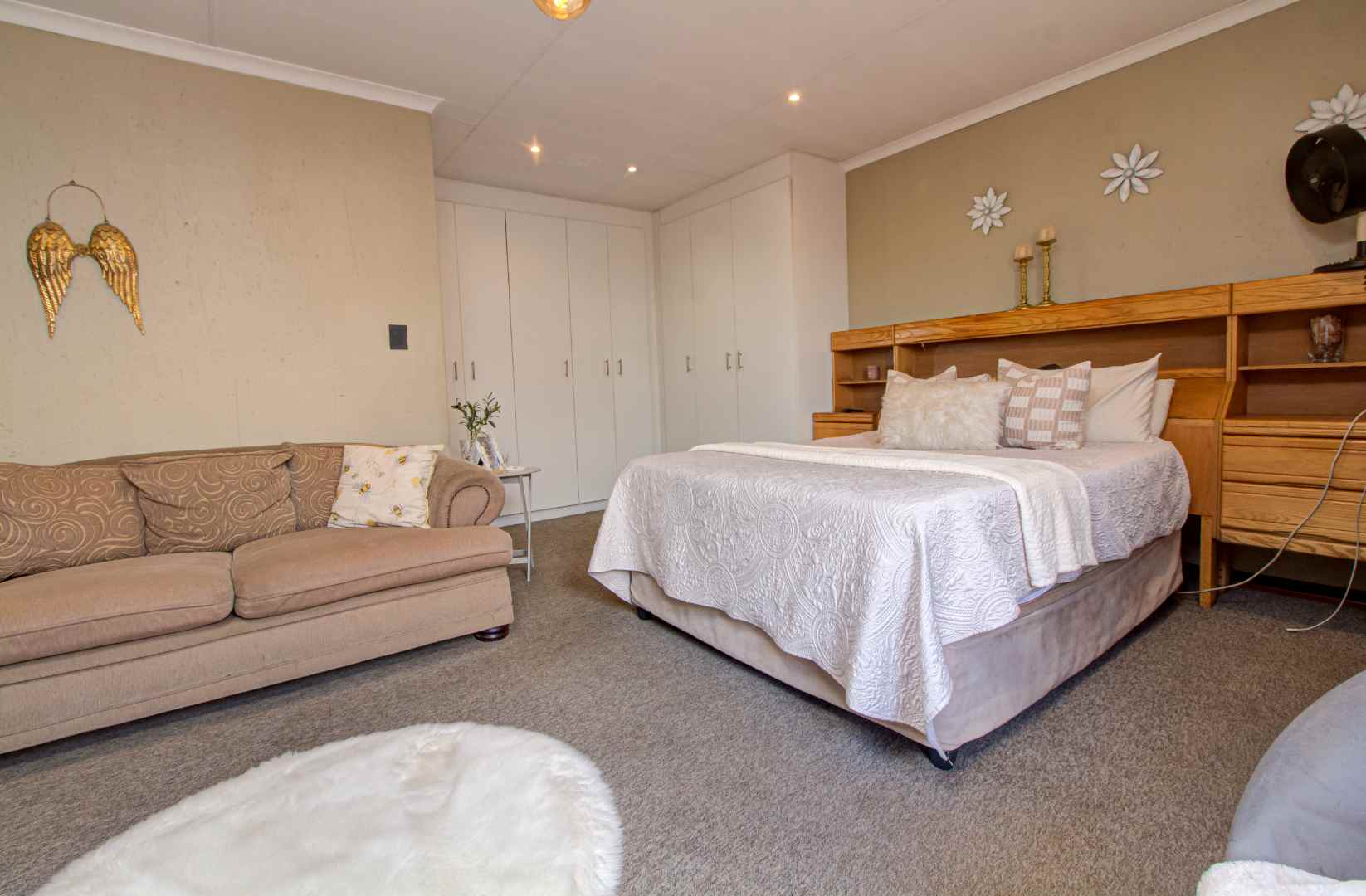 The main attraction of this home is undoubtedly the master bedroom, fit for royalty. This mammoth-sized room boasts ample built-in cupboards and a luxurious en suite bathroom, featuring a well-sized space with a spacious shower. It's a sanctuary of comfort and style.
