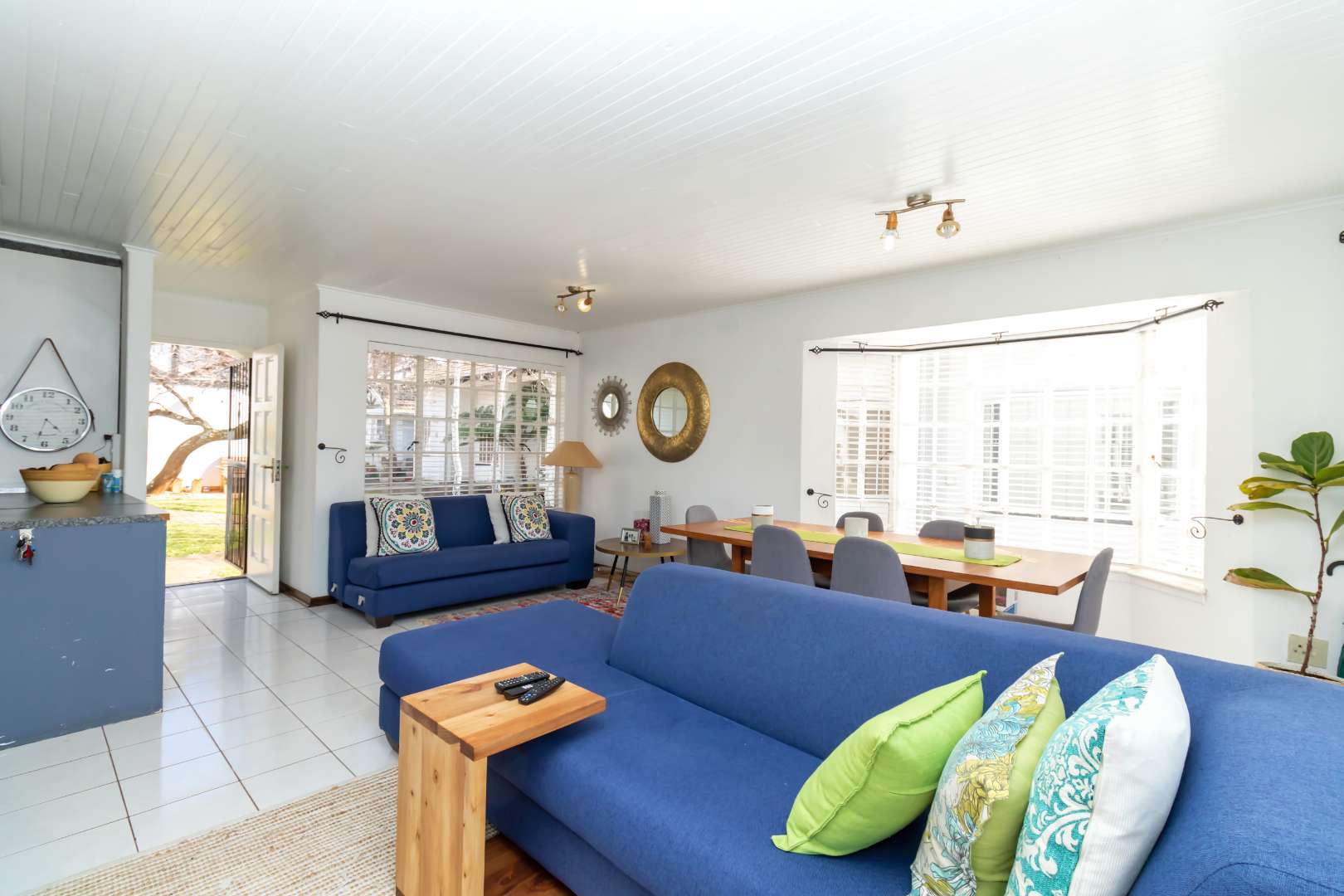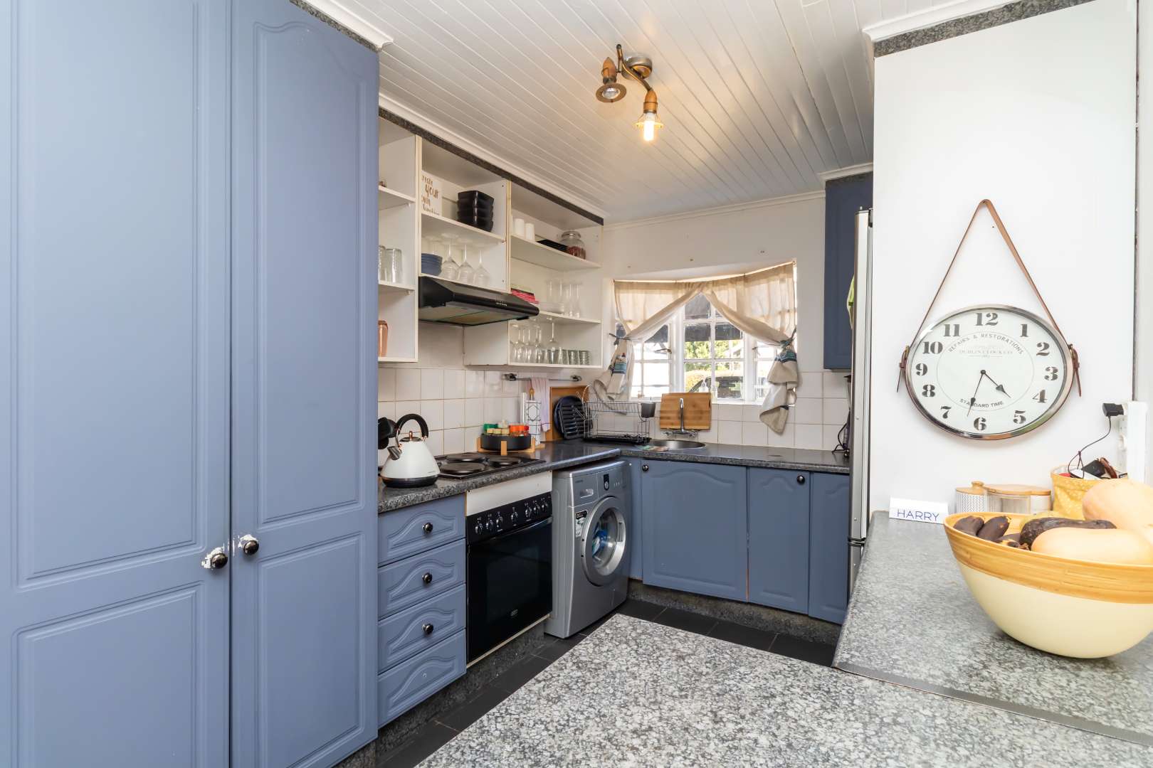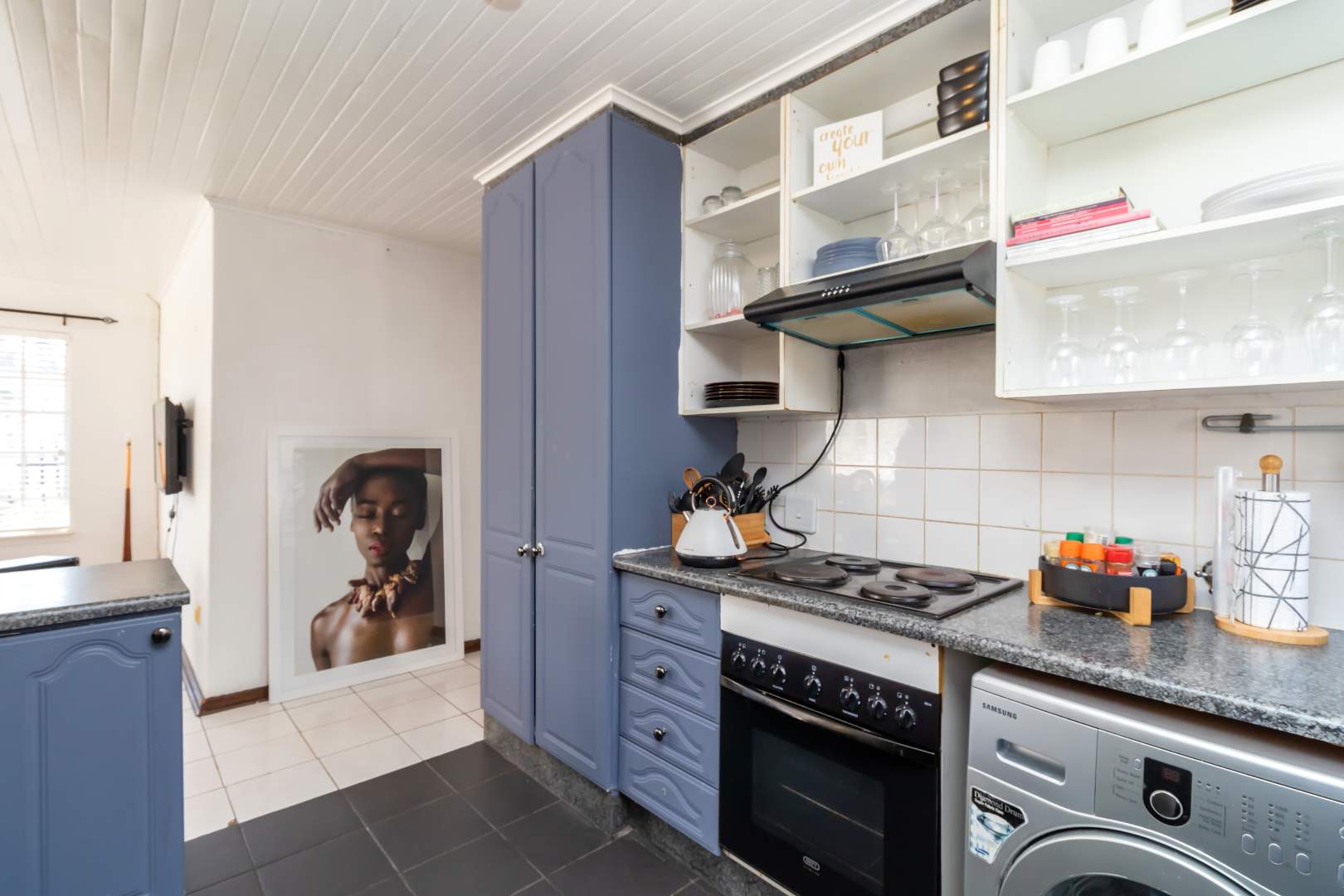 Step inside to an open plan living area, seamlessly integrating a tiled lounge and dining room. The kitchen is thoughtfully designed with ample cupboard space, generous counter areas, and provisions for one under-counter appliance.