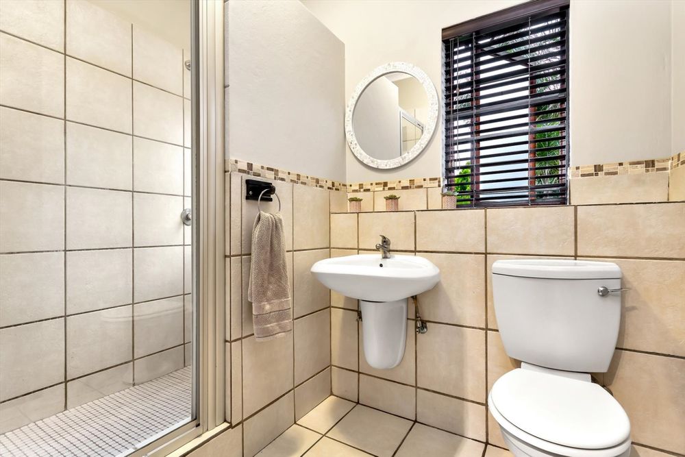 Bedrooms are perfectly positioned around the main structure. This creates privacy and togetherness, making family living a pleasure. The main en-suite bedroom has been fitted with laminated flooring and air-conditioning. The full en-suite bathroom has an oval corner bath with large corner windows bringing natural light into this space. The bathroom is also fitted with a well sized shower. The second and third bedrooms are also fitted with air-conditioning and tiles, both with doors leading out onto the lush lawns of the garden. A second bathroom serves both the second and third bedroom and can also be used as a guest bathroom.