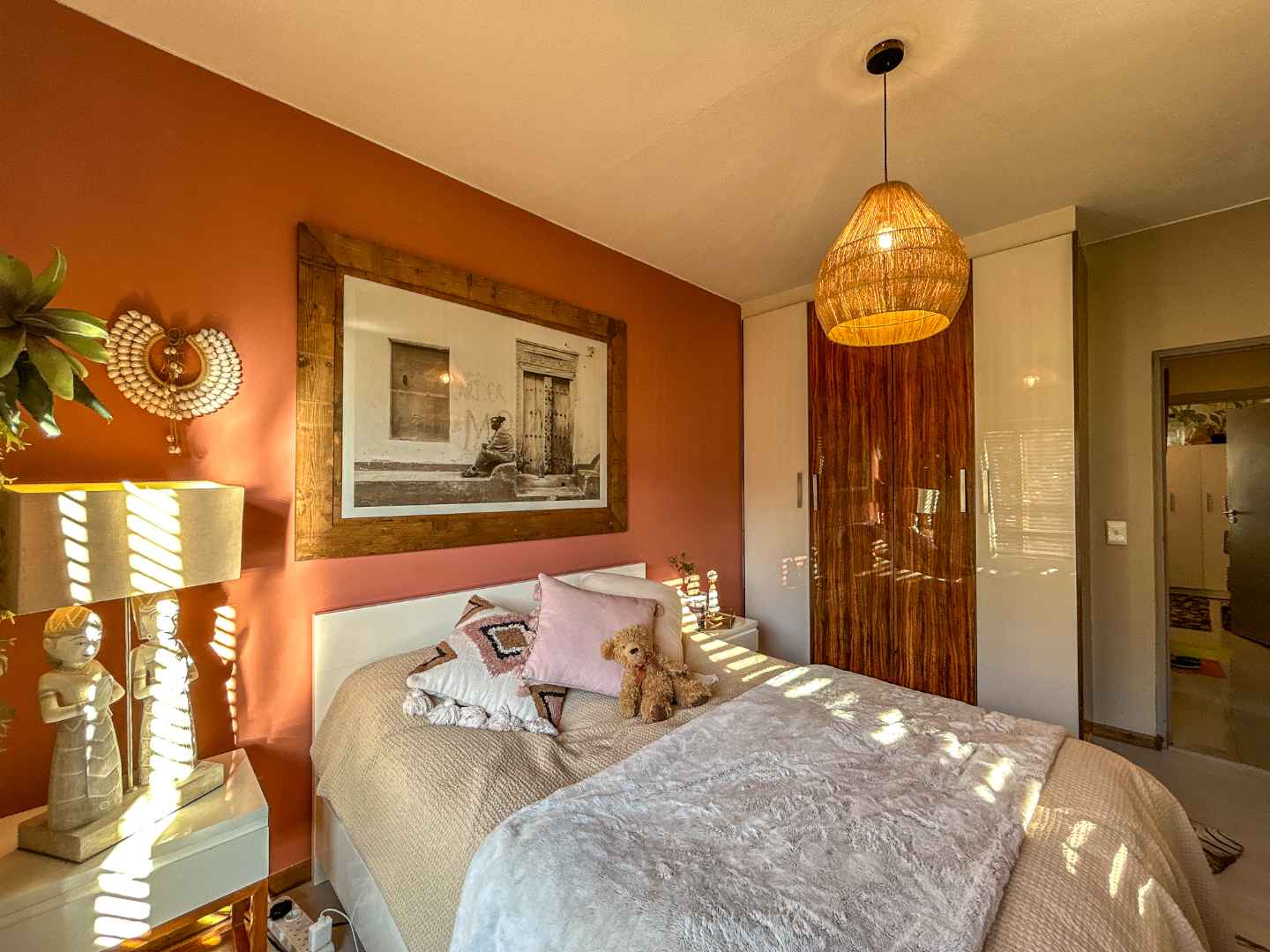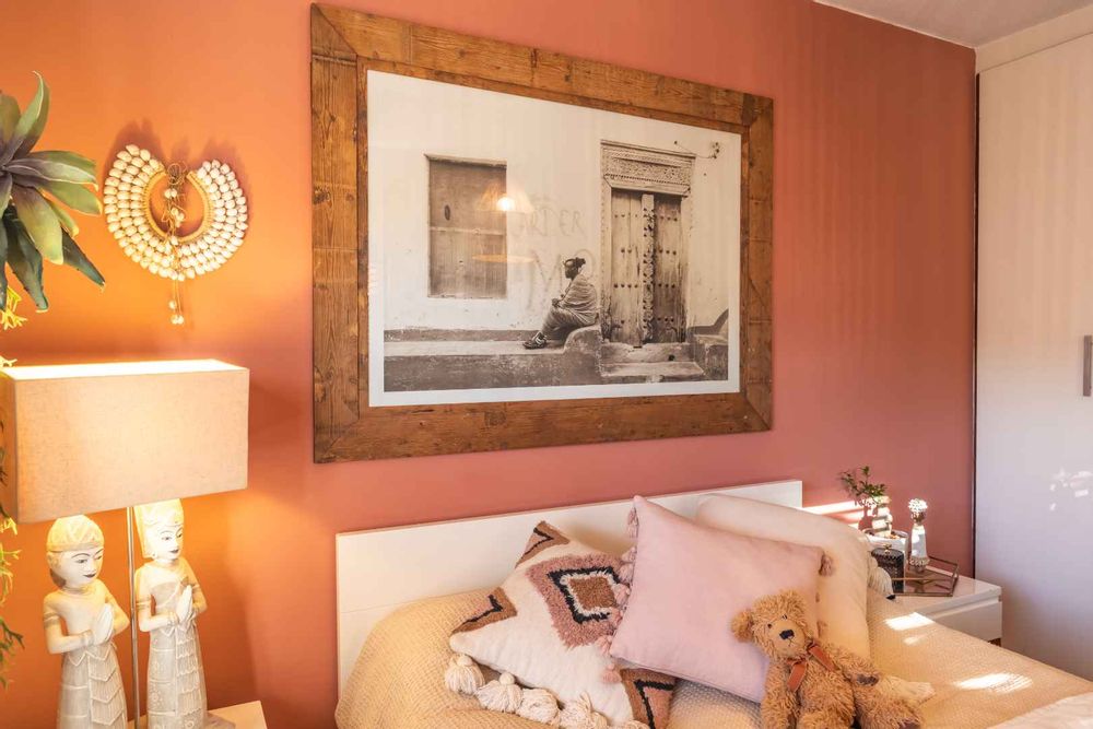 A home that radiates creativity and individuality, where every corner beautifully reflects the personality of its artistic owner. The modern open-plan kitchen seamlessly flows into the dining area and extends outward to the first balcony. The second bedroom is the same size as the main bedroom. Also, please note that the white cupboards are freestanding, not built-in.