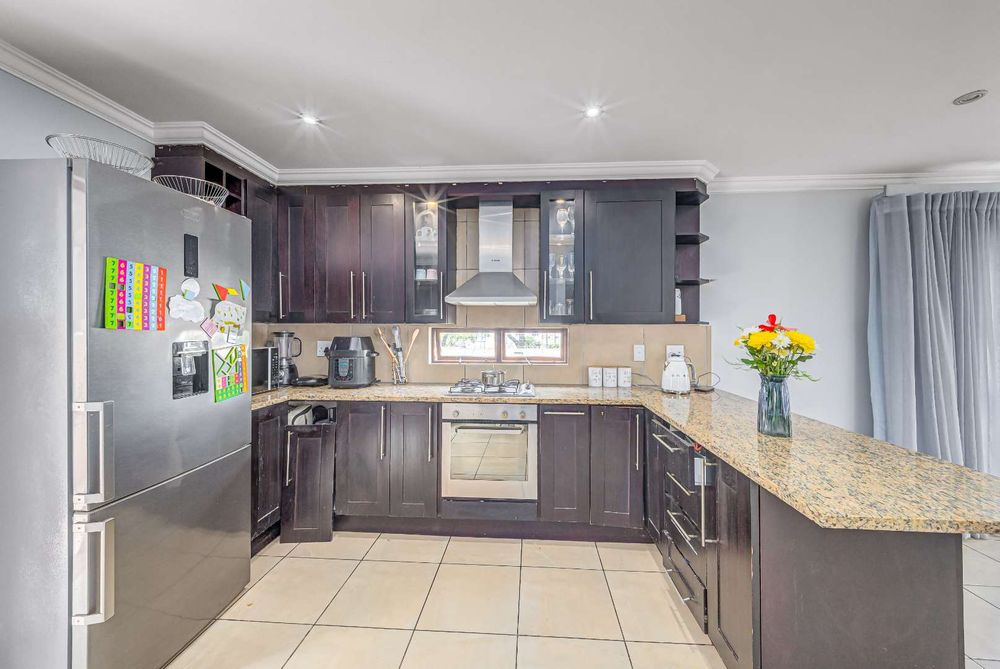 *Viewing by prior appointment with ID/passport, no walk ins. Bank approved buyers qualify for discounts on bond registration and transfer costs* This elegant home offers an exceptional blend of comfort and style where you can create lasting memories with your loved ones. Upstairs the large master bedroom with ensuite bathroom and wood laminate floors is a serene retreat after a long day. Two additional bedrooms, one with its own balcony, share a bathroom ideal for family living.